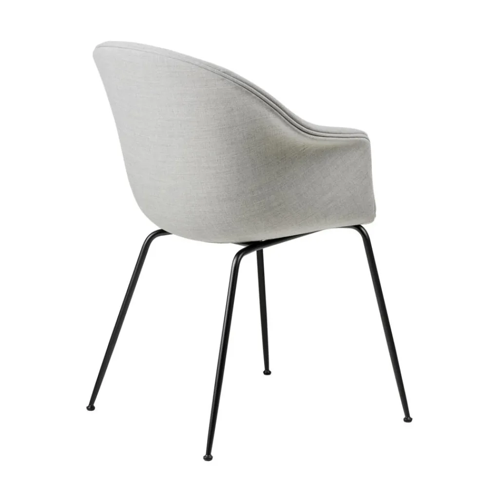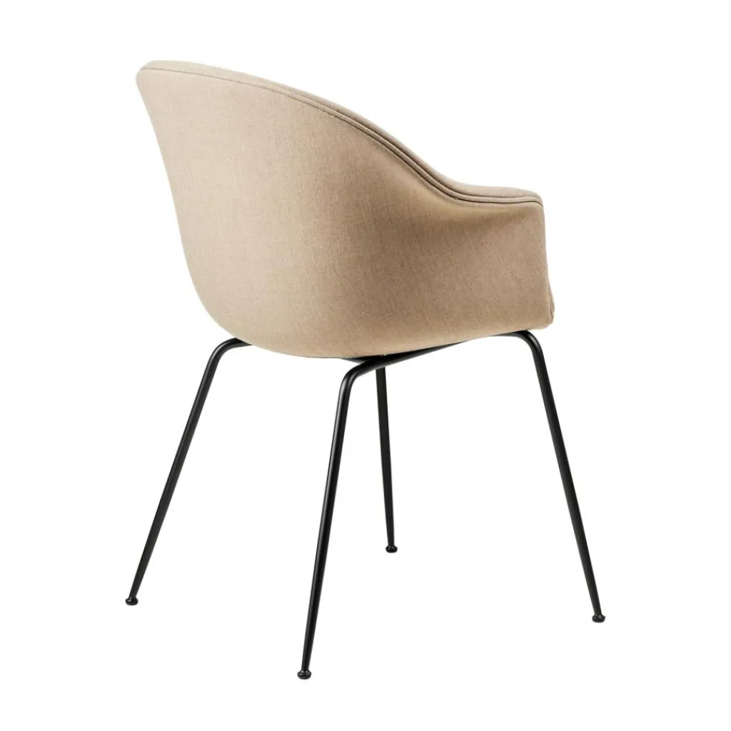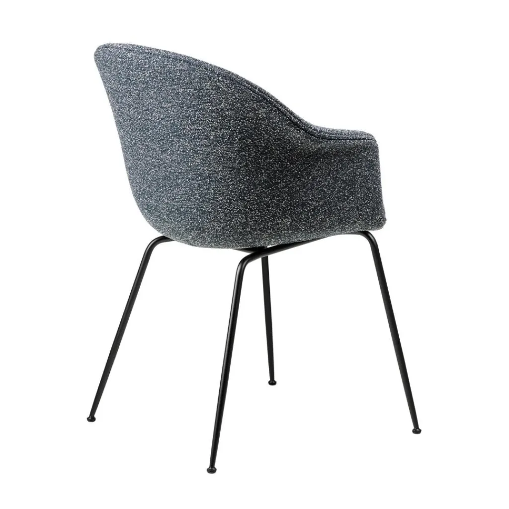 Der Bat Schalenstuhl Vollpolsterung Gestell konisch wurde von GamFratesi für die Marke Gubi entworfen. Er gehört zu einer Kollektion an bequemen Sitzmöbeln, die es auch aus anderen Materialien gibt.