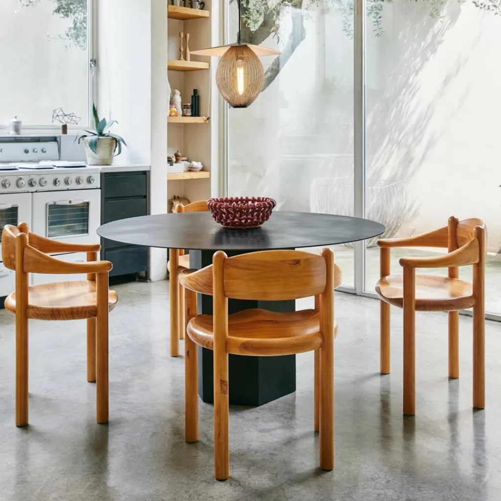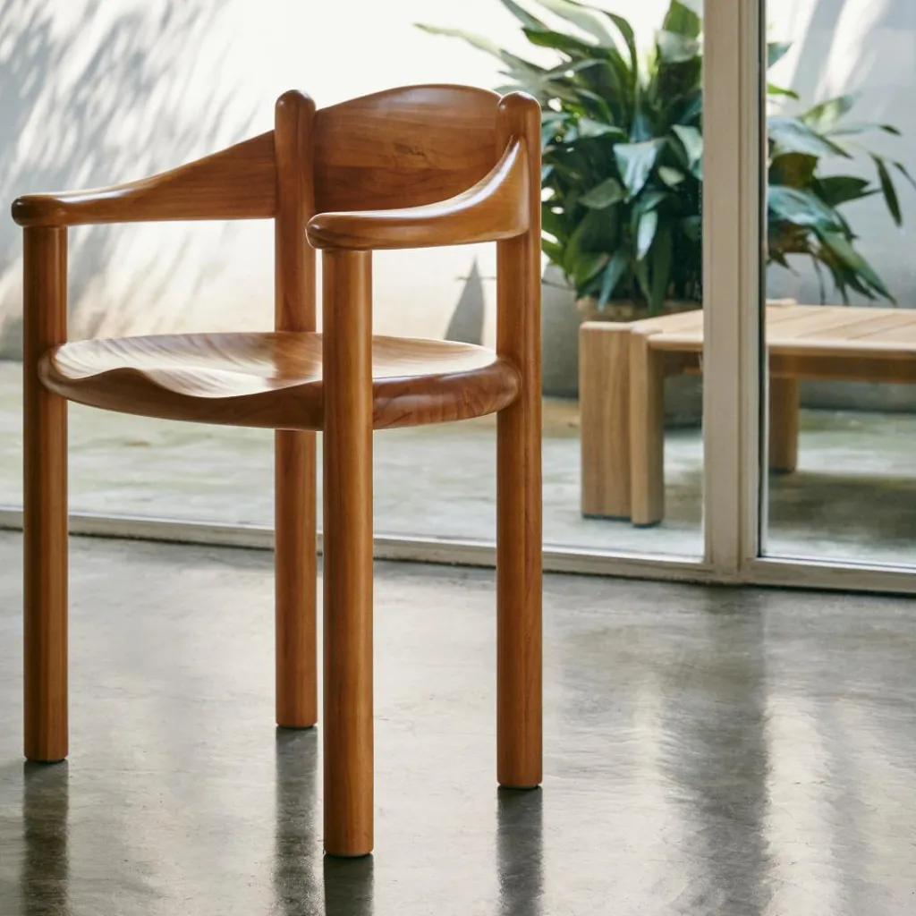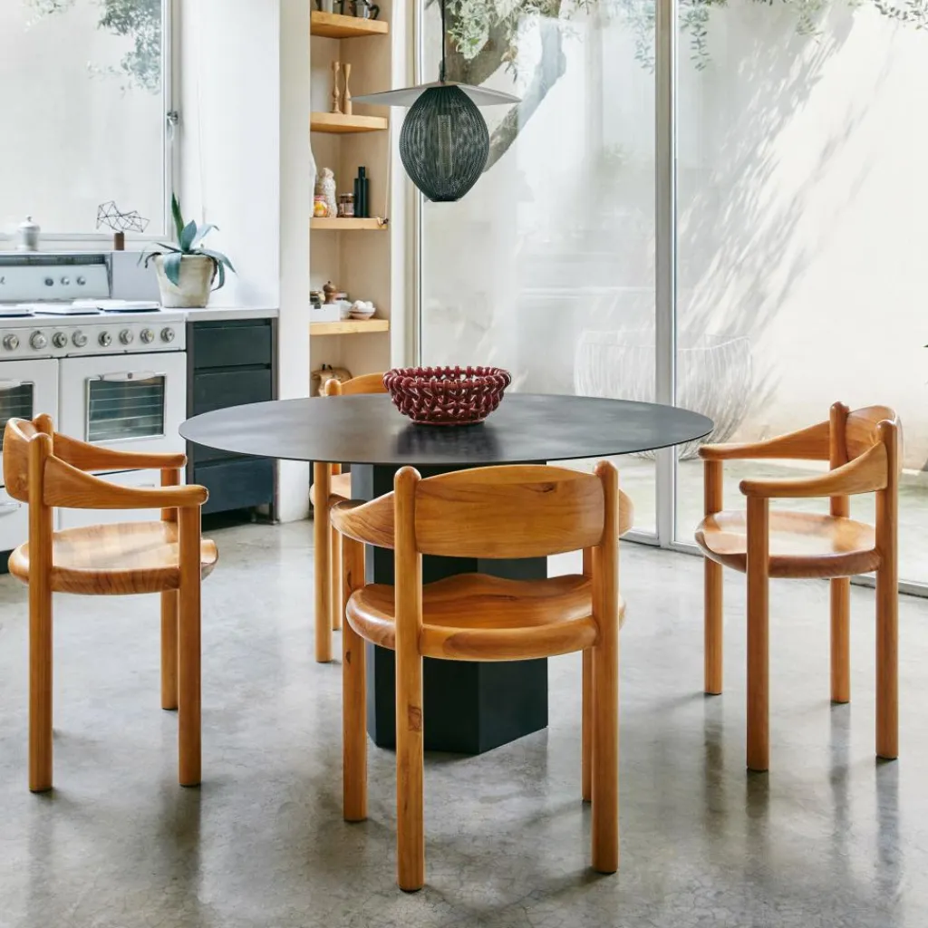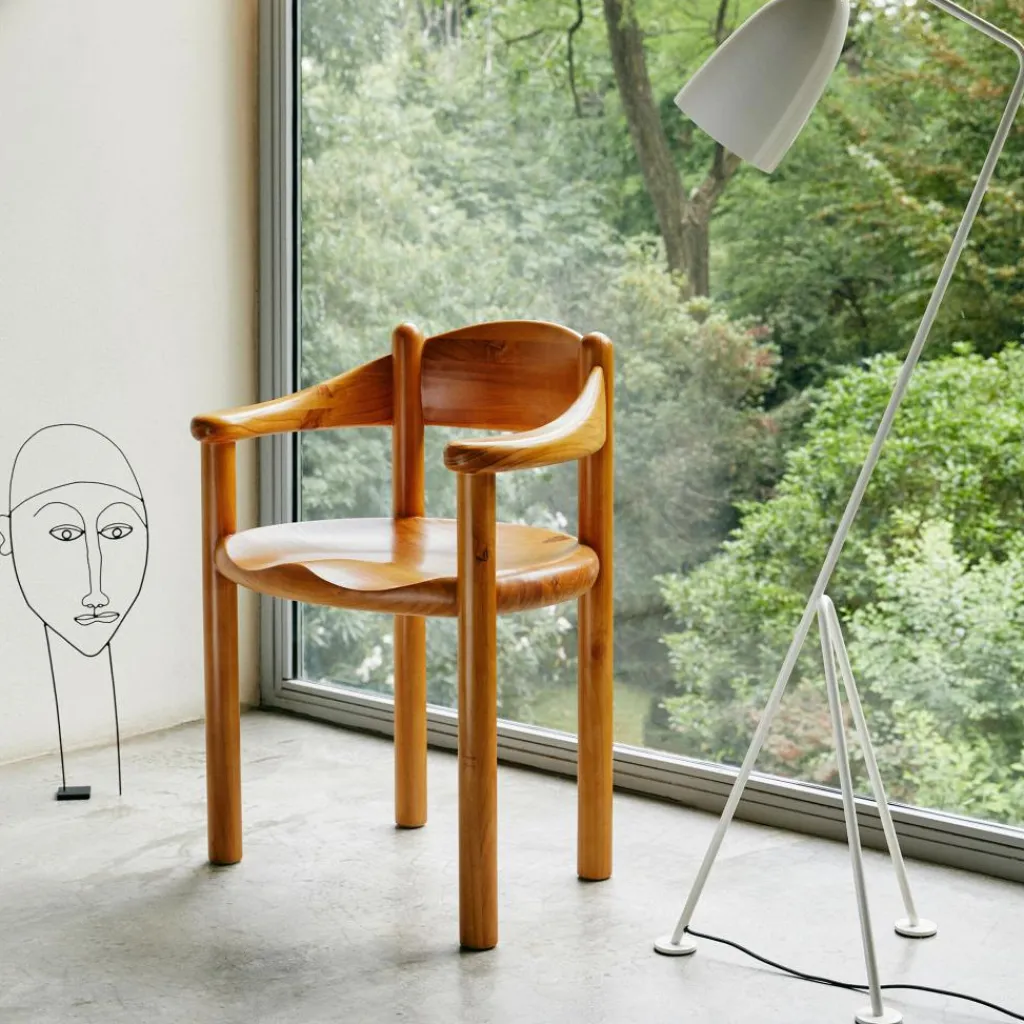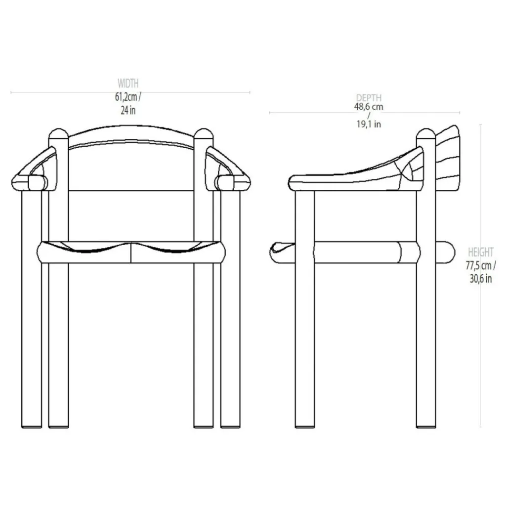 Der Daumiller Dining Armlehnstuhl wurde von Rainer Daumiller für die Marke Gubi entworfen. Das Design des soliden Stuhls stammt aus dem Jahr 1977. Er unterstreicht die Vorliebe des in Deutschland geborenen Designers für die Natur und traditionelles Handwerk.