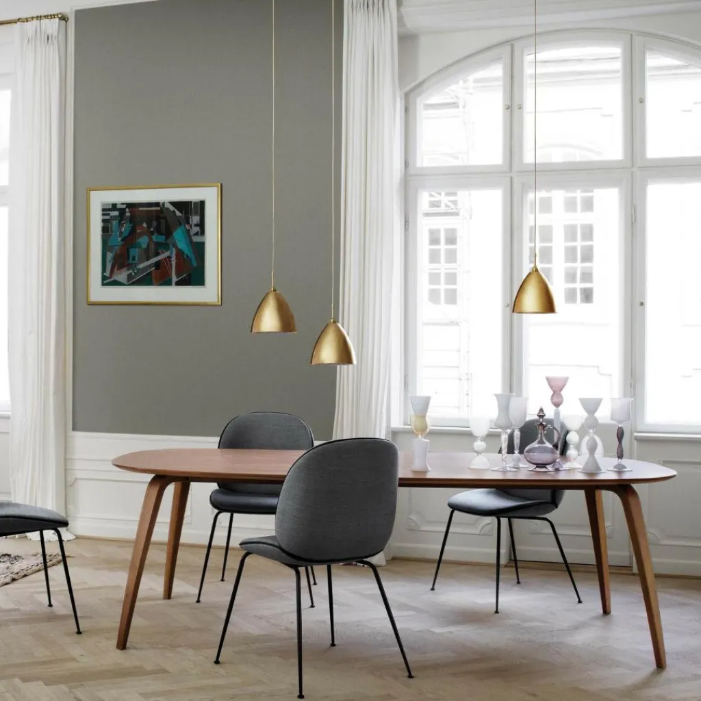 Der Dining Esstisch Elliptisch wurde von Komplot Design für den Hersteller GUBI entworfen. Das Designerteam, bestehend aus Poul Christiansen und Boris Berlin, setzte es sich nach dem erfolgreichen GUBI Chair zum Ziel, den passenden Tisch zu dem im Jahre 2004 mit dem The Danish Design-Preis und dem RED DOT Design Award ausgezeichneten Stuhl zu entwerfen. Die jahrelange Erfahrung innerhalb Dänemarks und auch bei international tätigen Unternehmen resultierte schließlich im Dining Esstisch Elliptisch.