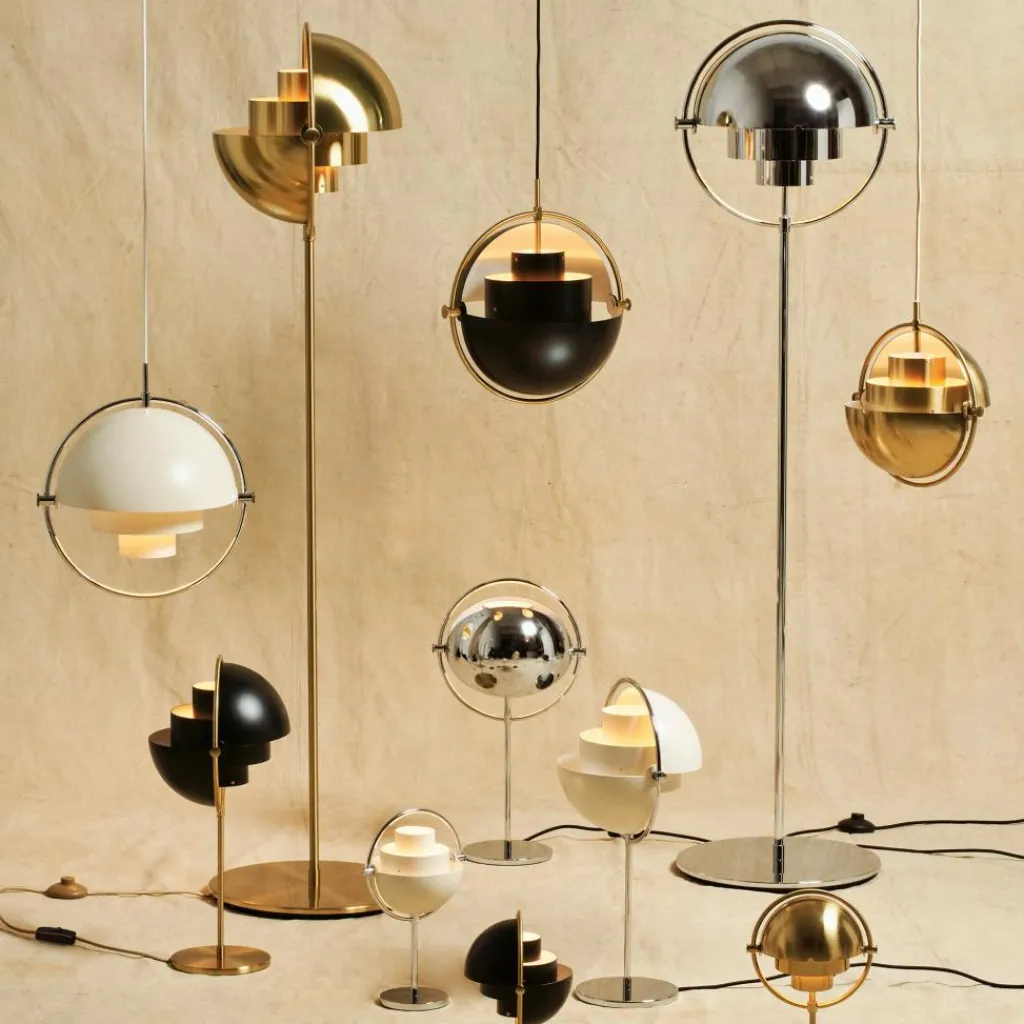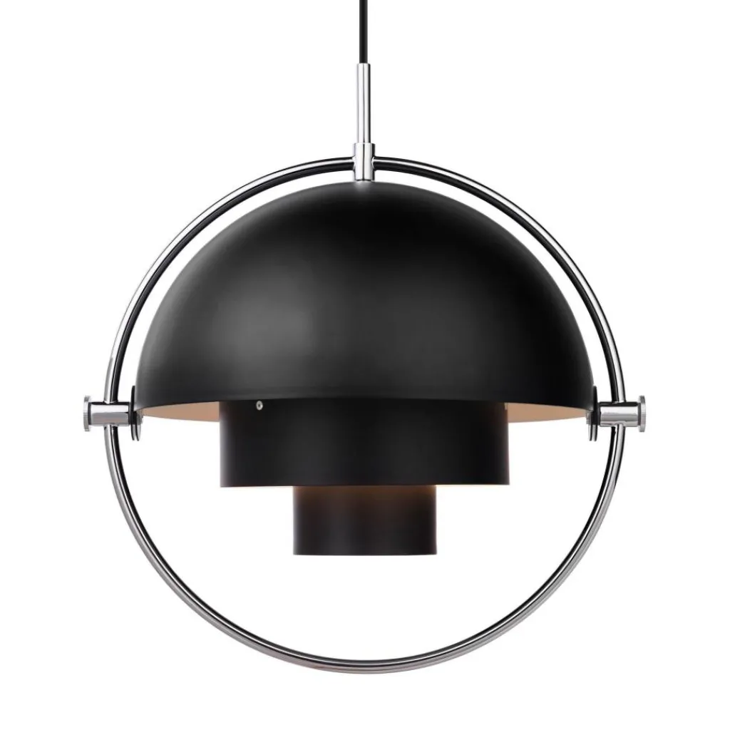 Entworfen wurde die Multi-Lite Pendelleuchte Ø36cm Gestell Chrom bereits im Jahr 1972. Damals wie heute bringt sie mit ihren liebevoll gestalteten Details und ihrer markanten geometrischen Form Glamour in die eigenen vier Wände. Die Multi-Lite Pendelleuchte Ø36cm Gestell Chrom besteht aus einem oberen Teil, der als Halbkugel geformt ist. Darunter befinden sich zwei Viertelkreise, und ein Zylinder komplettiert das Design. Durch ihn wird das Licht abgestrahlt. Außergewöhnlich ist, dass sich die geteilte Halbkugel mithilfe von Metallringen teilen lässt. Somit kann das Modell ganz nach dem persönlichen Geschmack adjustiert werden.