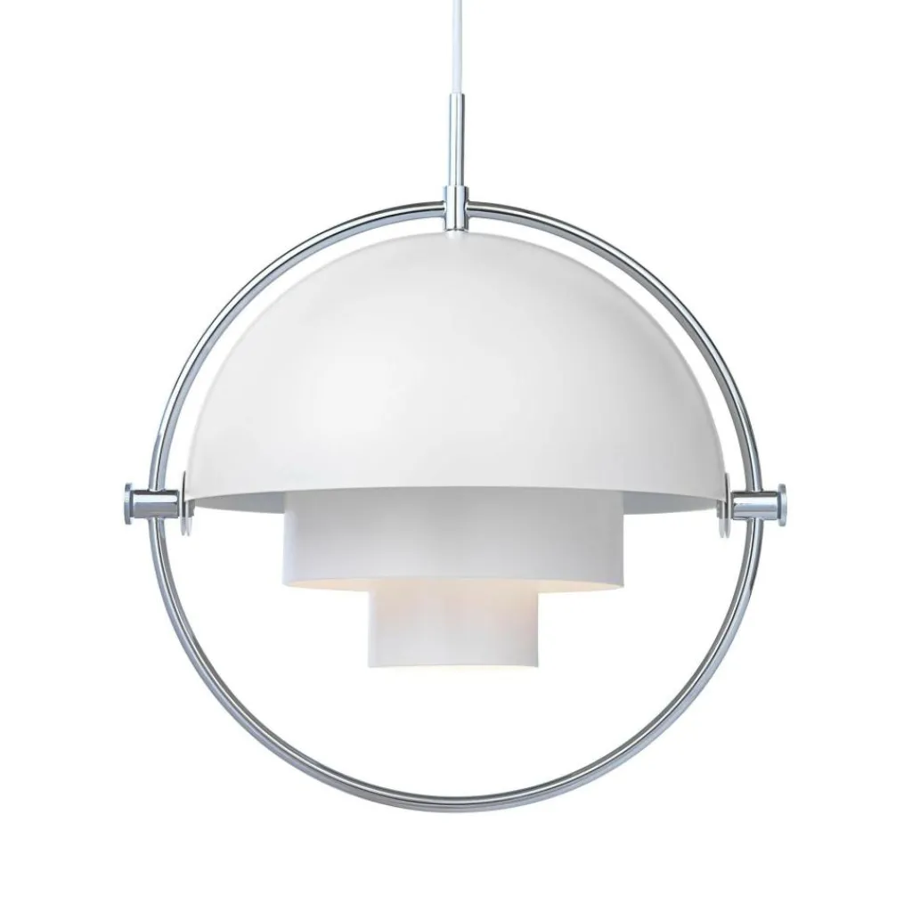 Die Multi-Lite Pendelleuchte Ø36cm Gestell Chrom wurde von Louis Weisdorf für die Marke Gubi entworfen. Bekannt wurde der Däne vor allem für seine ikonischen Leuchten. Ganz nach diesem Stil gestaltete er die Multi-Lite-Serie, die Pendel- und Stehleuchten umfasst.