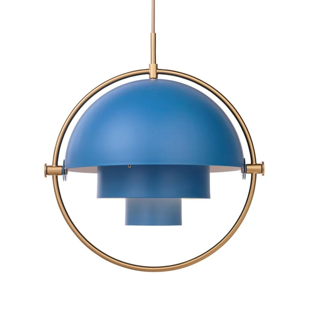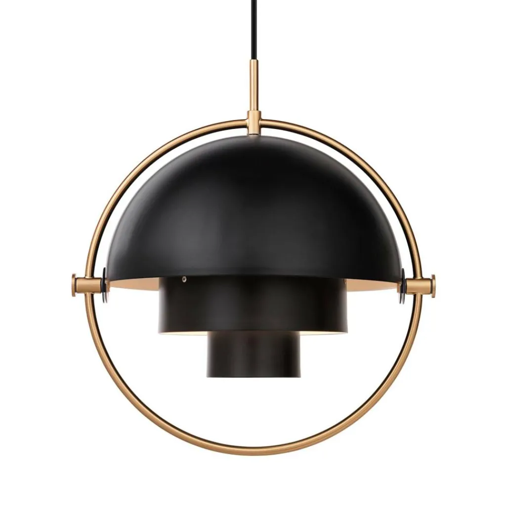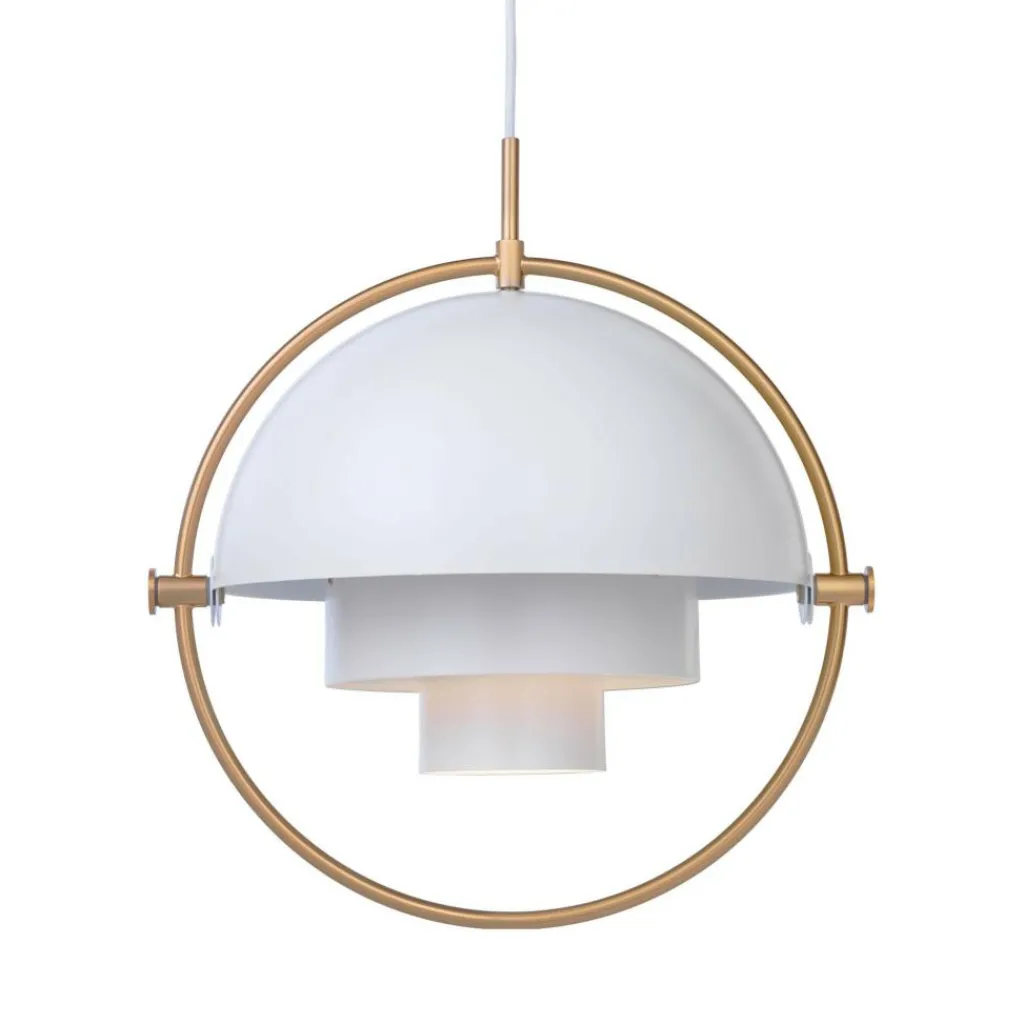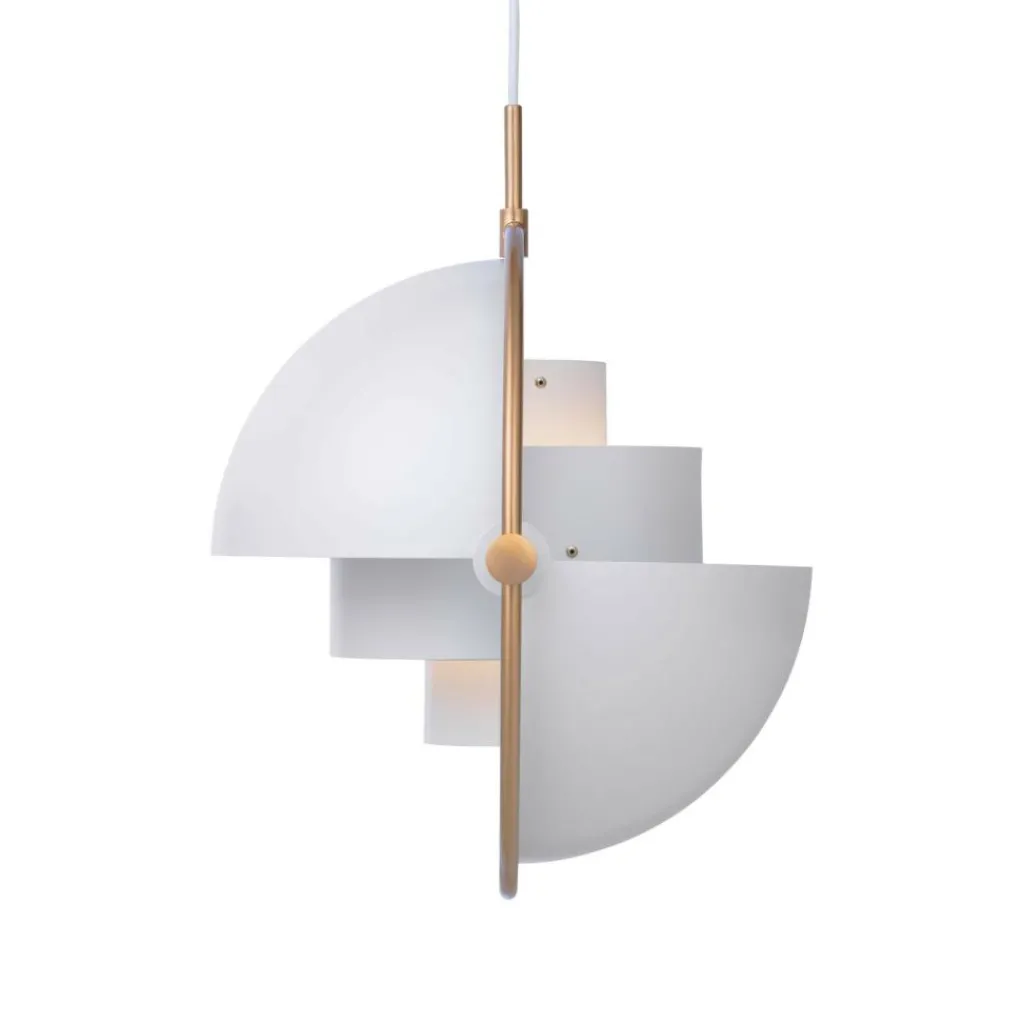 Die Multi-Lite Pendelleuchte Ø36cm Gestell Messing wurde von Louis Weisdorf für die Marke GUBI entworfen. Sie besticht mit überraschenden Details: Der in einer Halbkugel gestaltete Leuchtenschirm ist nämlich geteilt und wird durch einen Metallring zusammengefasst. Je nach persönlichem Geschmack kann die Leuchte geteilt werden. Somit lassen sich die Halbkugel und die beiden Viertelkugeln darunter flexibel ausrichten.