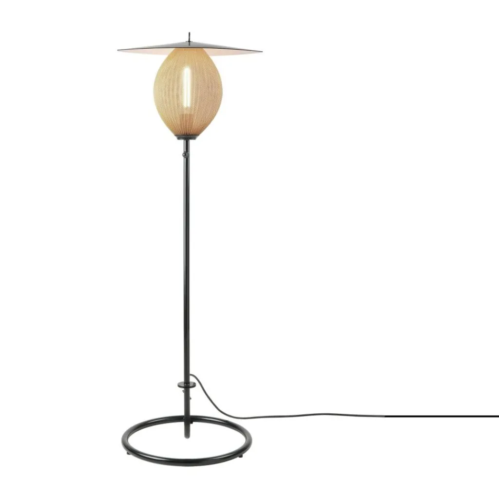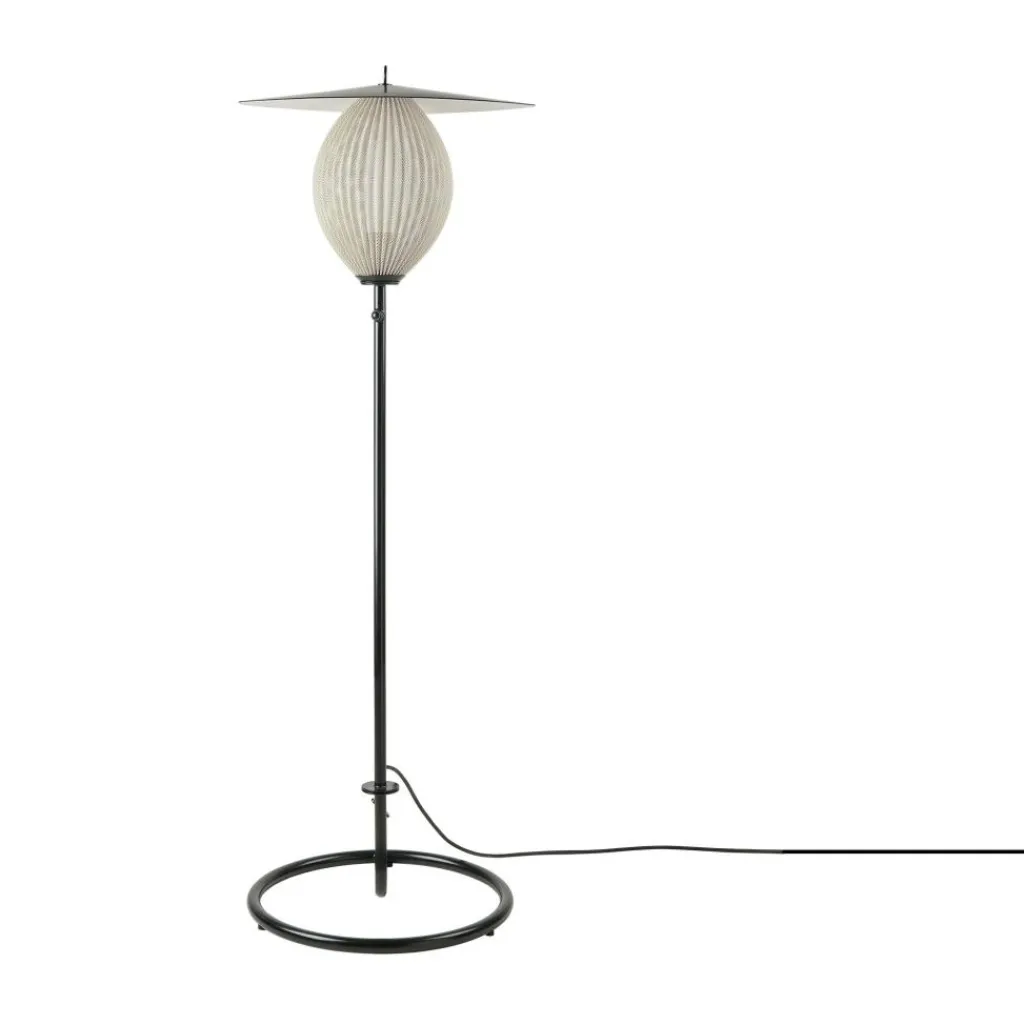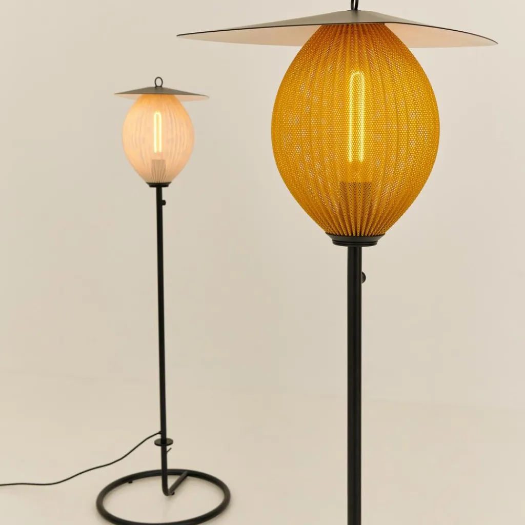 Die Satellite Outdoor Stehleuchte wurde von Mathieu Matégot für die Marke Gubi entworfen. Sie gehört zu einer Kollektion stilvoller Leuchten, die auch Pendelleuchten umfasst. Da das Modell in Schutzart IP65 gefertigt ist, eignet es sich perfekt für den Außenbereich.