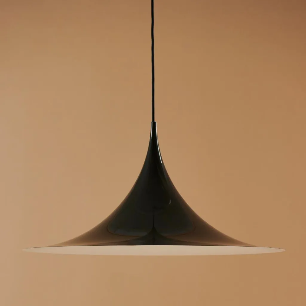 Die Semi Pendelleuchte Ø60cm wurde von Claus Bonderup & Thorsten Thorup für die Marke Gubi entworfen. Sie gehört zu einer Kollektion, deren Design aus dem Jahr 1968 stammt und von der Royal Danish Academy of Fine Arts ausgezeichnet wurde. Sie zählt zu den beliebtesten Leuchten der 1970er und 1980er in Dänemark. Nun sind die Kultleuchten in zeitgemäßen Farben erhältlich.