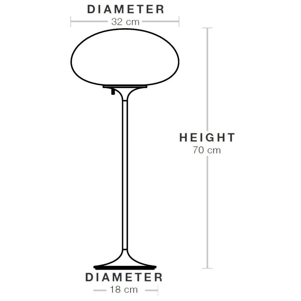 Die 70 cm hohe Stemlite Tischleuchte H 70cm in modernem Design passt perfekt auf den Arbeits- oder Nachttisch. Der Leuchtenschirm weist einen Durchmesser von 32 cm auf, der Fuß ist mit 18 cm Durchmesser schmäler. An den Stromkreis angeschlossen wird das Modell mit einem 220 cm langen Textilkabel. Das passende Leuchtmittel mit einer Fassung E 27 kann unter Zubehör mitbestellt werden.
