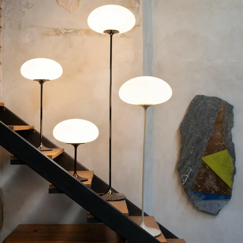 In den 1960er Jahren als die ersten Satelliten die Erde umkreisten, herrschte eine große Begeisterung für die Raumfahrt. Diesen Trend erkannte Curry und setzte in der Stemlite Tischleuchte H 70cm seine Vorstellung futuristischen Designs um. Das ist ihm so gut gelungen, dass sie am Set der bekannten Star-Trek-Fernsehserie verwendet wurde. Ganz dem Zeitgeist der 1960er Jahre entspricht das von der Marke Gubi auf den Markt gebrachte Modell. Es vereint die altehrwürdige Kunst der Glasherstellung mit moderner Technik: Auffallend ist der mundgeblasene Leuchtenschirm, der auf einem vergleichsweise schlanken Sockel aus Stahl montiert ist.