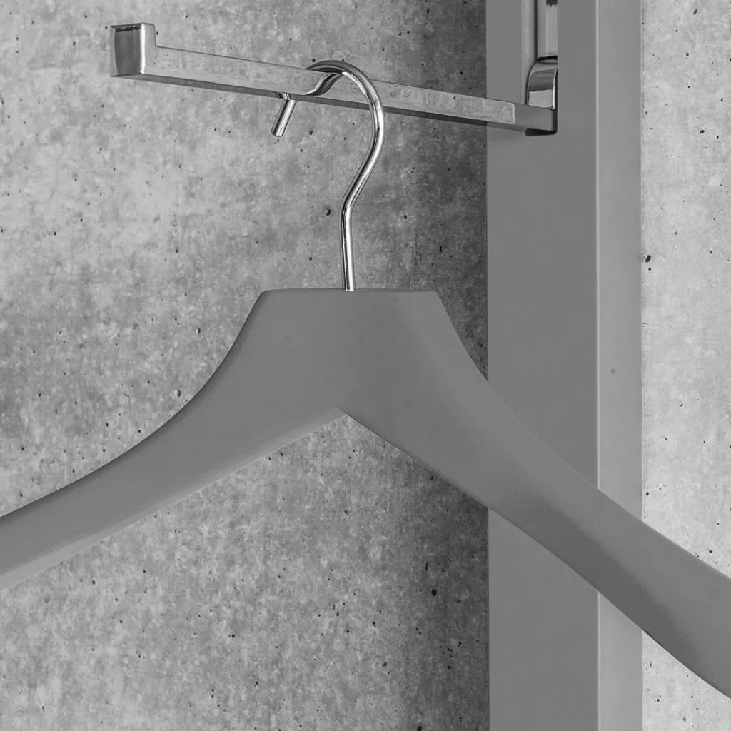 Das 0112 Kleiderbügel Set ist aus natürlichem Massivholz gefertigt. Die bunt lackierte Buche verspricht ein angenehmes Gewicht, wodurch die Kleiderbügel perfekt ausbalanciert wirken. Je nach Ausrichtung Ihrer Garderobe haben Sie die Wahl, wenn es um die Farbe der Kleiderbügel geht. Entscheiden Sie sich zwischen einem Weiß, Kieselstein, Tomatenrot, Stahlblau, Aqua, Schwarz und Moosgrün und setzen Sie farbige Akzente in Ihrem Ankleidezimmer.