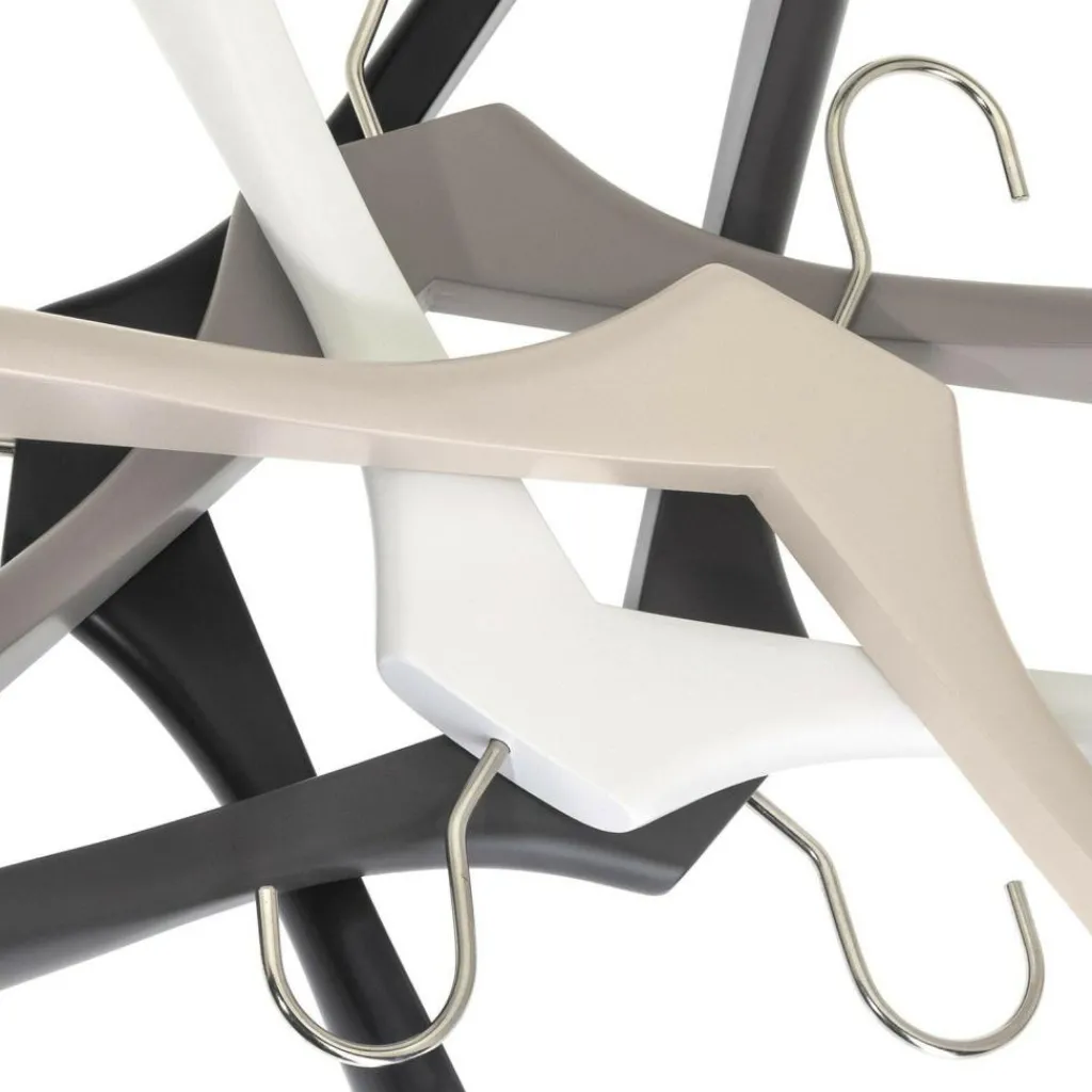 Die 39,5 cm breiten und 22,5 cm hohen Teile vom 0112 Kleiderbügel Set sind leicht gebogen, wodurch sie sich an der Kleiderstange perfekt aneinanderreihen. An der Oberseite ist ein stabiler, chromfarbener Metallhaken befestigt, der ein sicheres Aufhängen selbst von schweren Mänteln erlaubt. Das praktische Set von Schönbuch enthält vier Kleiderbügel, die mit der handwerklich perfekten Verarbeitung und dem außergewöhnlichen Farbspektrum neuen, frischen Wind in Ihre Garderobe bringen werden.