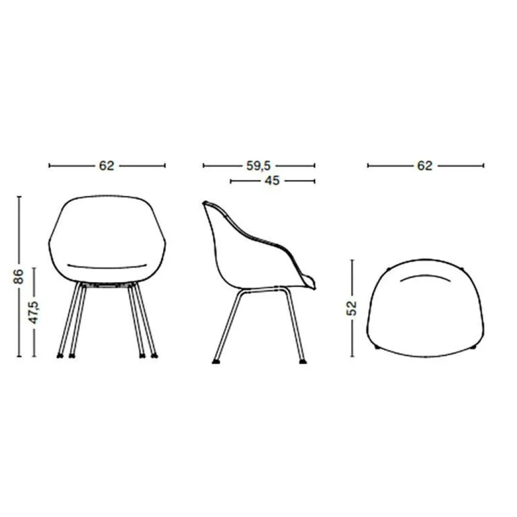 | Abmessungen | Breite: 62cm Höhe: 86cm Tiefe: 59.5cm Sitzhöhe: 47.5cm Höhe Rückenlehne: 86cm |