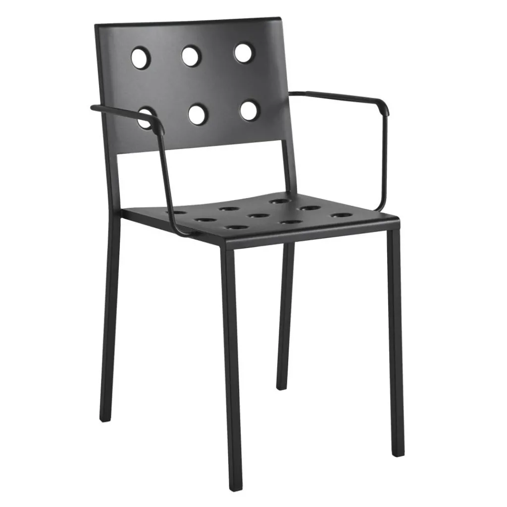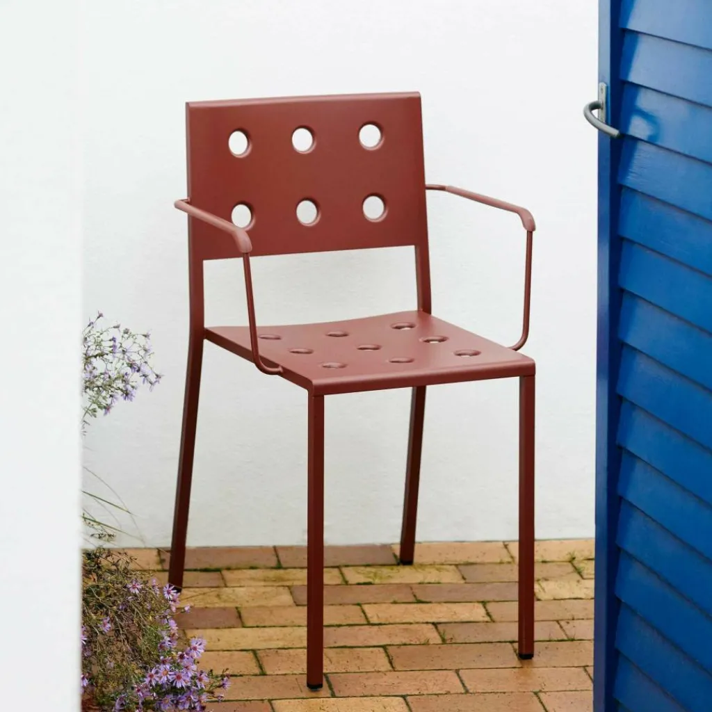 Mit seinem grafischen Design, wetterfesten Materialien und hoher Alltagstauglichkeit ist der Balcony Dining Gartenarmlehnstuhl ein durchdachtes Outdoor-Möbel von HAY, das ebenso langlebig wie stilvoll ist – und dabei stets auf das Wesentliche konzentriert bleibt.