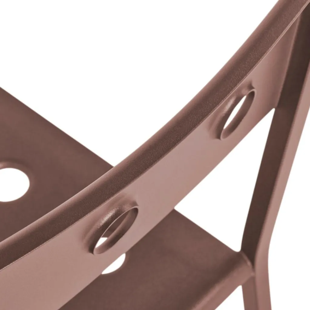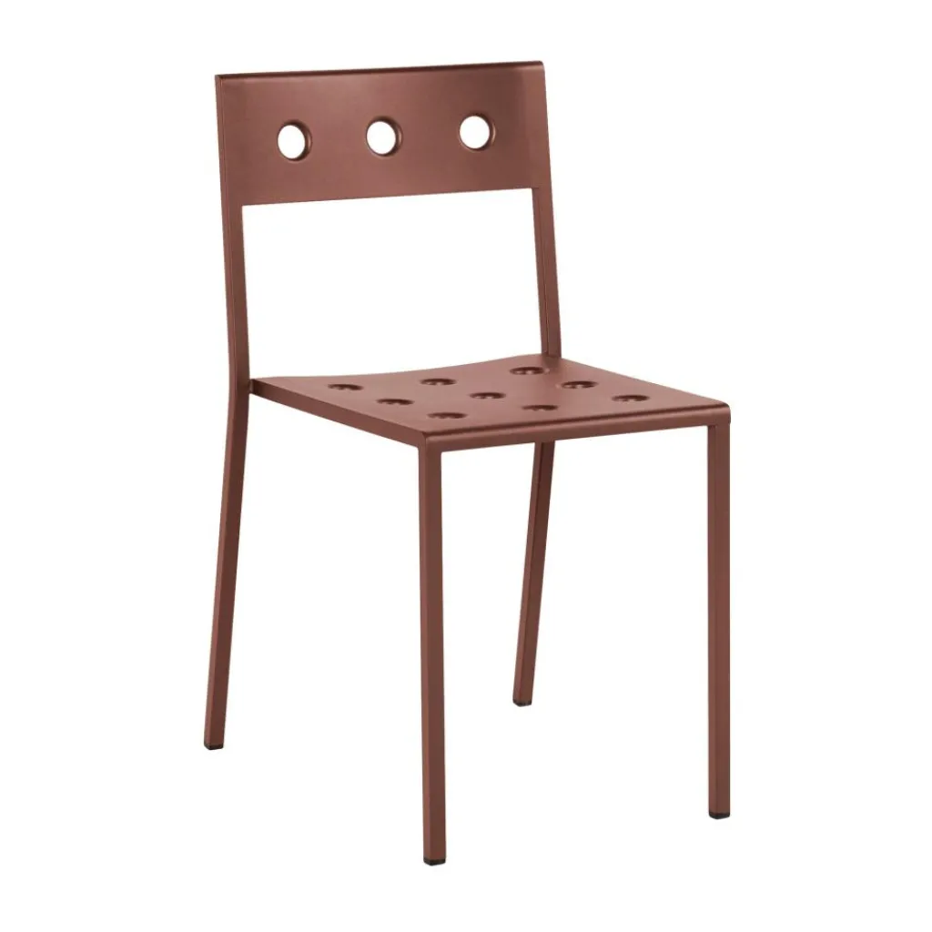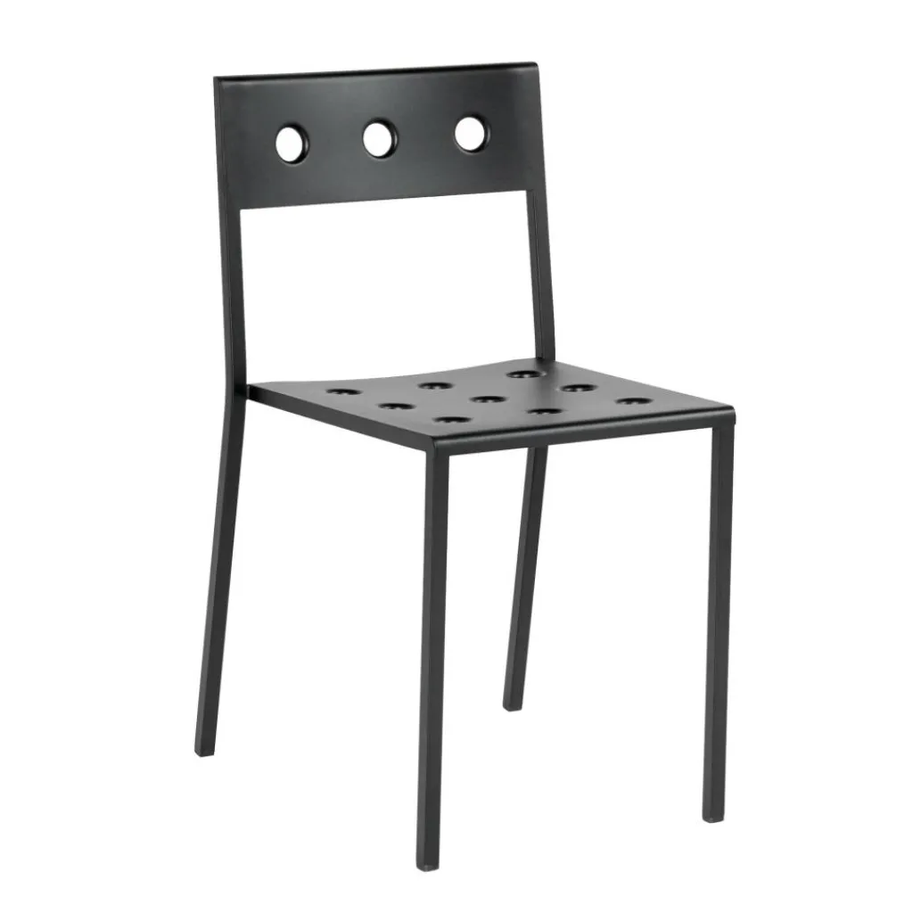 Die Löcher in der Rückenlehne und in der Sitzfläche machen den Balcony Gartenstuhl unverwechselbar. Sie werden ganz exakt mit einem Laser eingefräst. Der Balcony Gartenstuhl besteht aus pulverbeschichtetem Stahl. Die Oberfläche wird mit einem wetterbeständigen Lack versehen. Somit kann der Balcony Gartenstuhl, der in verschiedenen Farben zu haben ist, auch bei Regen im Freien bleiben. Durch die Löcher fließt Nässe rasch ab. Gerade Beine aus filigranem Stahlrohr sorgen für festen Stand.
