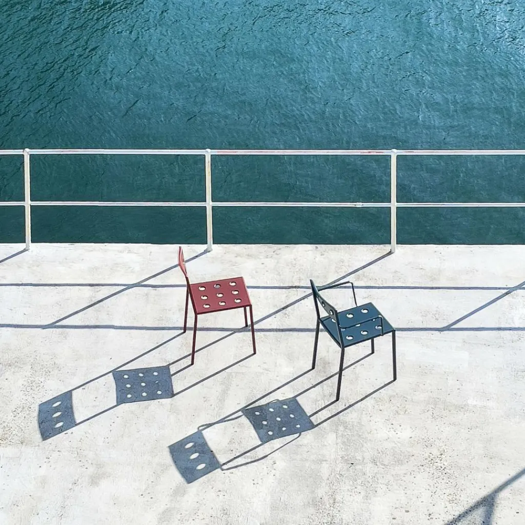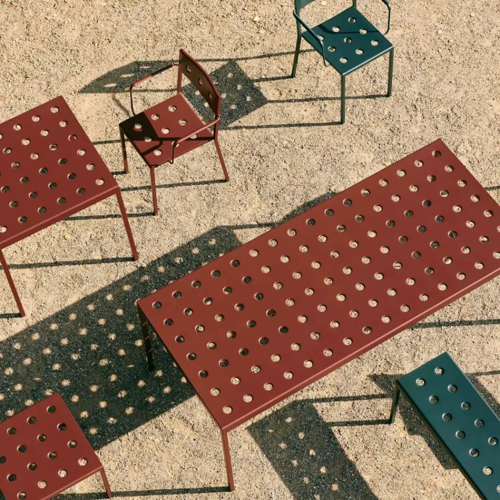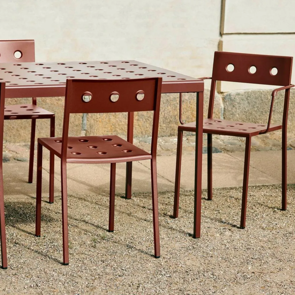 Der Balcony Gartenstuhl wurde von Ronan und Erwan Bouroullec für die Marke HAY entworfen. Die französischen Designer erschufen eine elegante und leichte Outdoorkollektion, die sich für viele Einsatzbereiche eignet und auch Tische umfasst: Die Stühle werden auf dem Balkon oder der Terrasse sowie im Garten zur bequemen Sitzgelegenheit. Der Balcony Gartenstuhl ist auch für Outdoorbereiche von Cafés und Hotels geeignet.