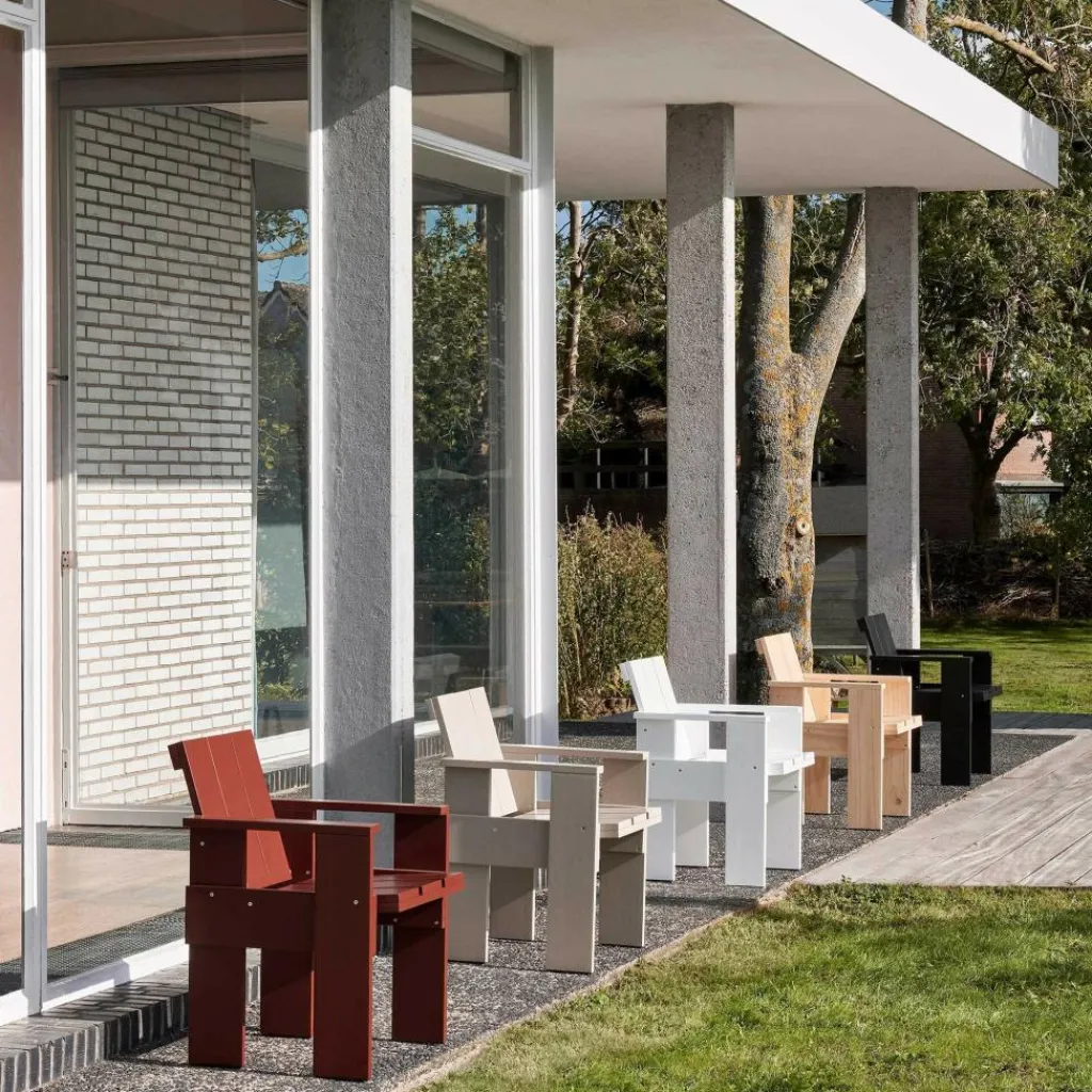 Der Crate Gartenstuhl 64cm wurde von Gerrit Rietveld für die Marke HAY entworfen. Er ist Teil einer modernen Outdoorserie, deren Design aus dem Jahr 1934 stammt. Nun wurde der Entwurf des niederländischen Designers, der mit hölzernen Transportkisten arbeitet, neu aufgelegt.