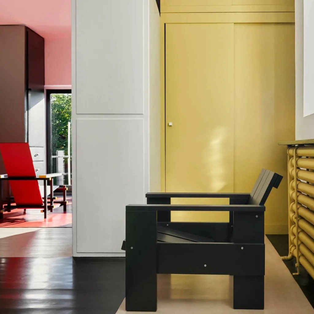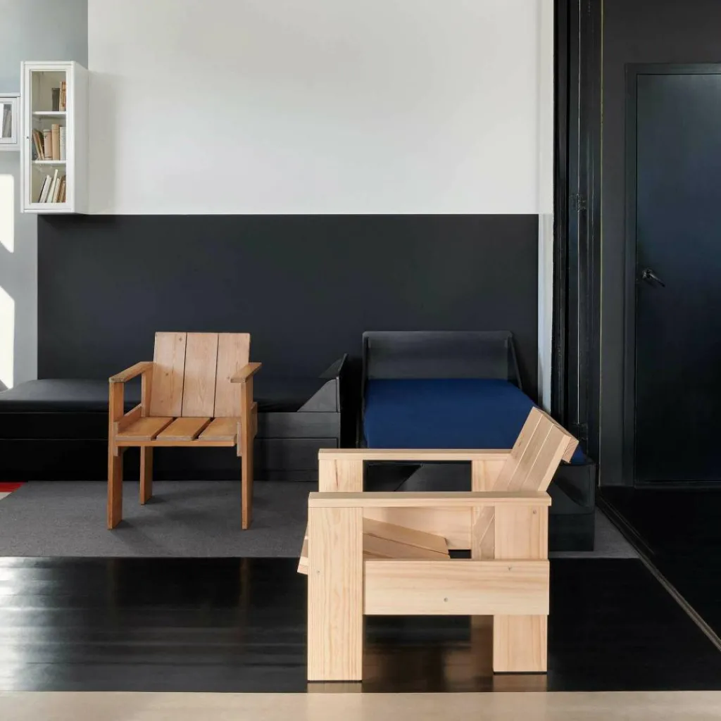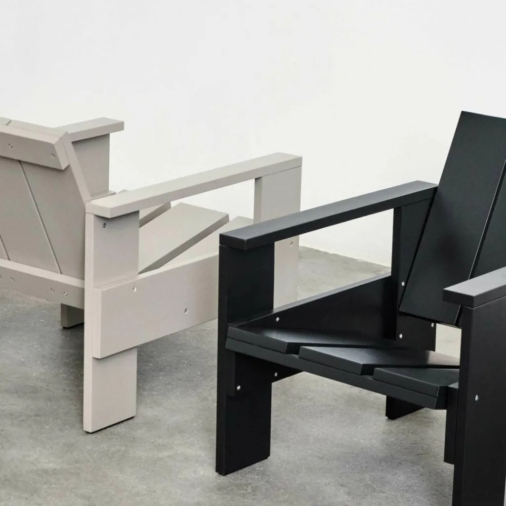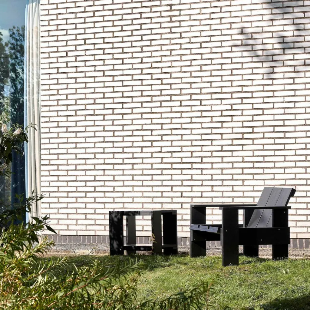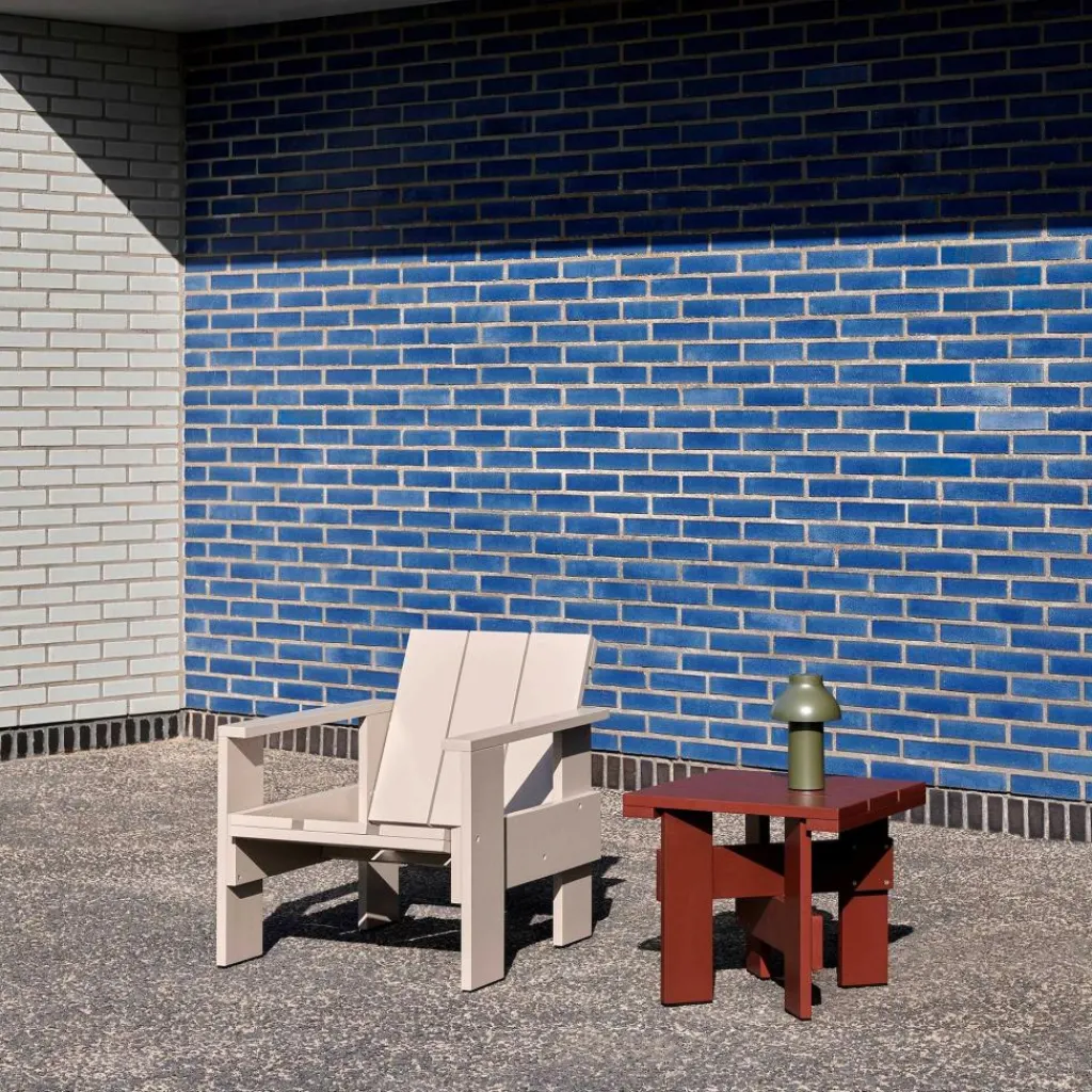 Der Crate Lounge Gartenstuhl 77cm wurde von Gerrit Rietveld für die Marke HAY entworfen. Er gehört zu einer Kollektion von Outdoormöbeln, die aus hölzernen Transportkisten bestehen. Das Design stammt aus 1934 und wurde nun unter Berücksichtigung der präzise abgestimmten Proportionen neu aufgelegt.