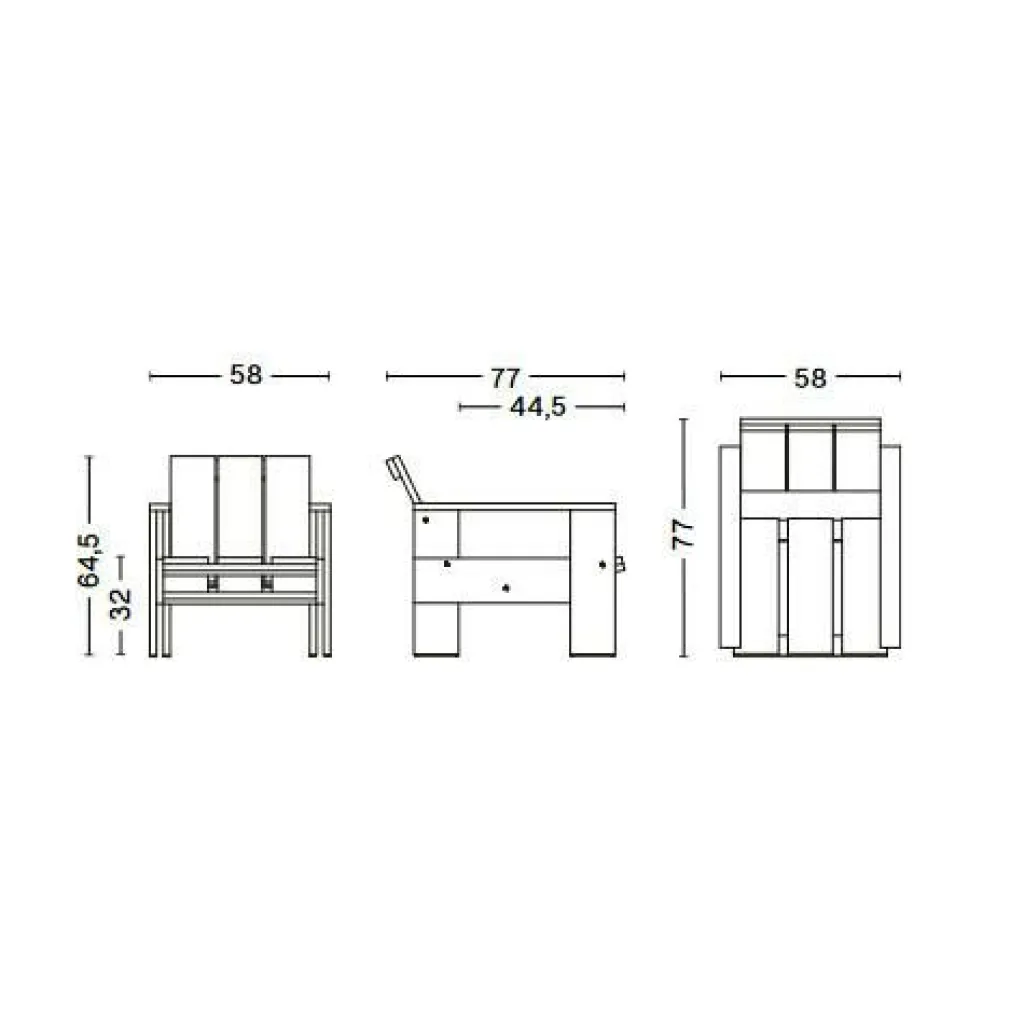 Der Crate Lounge Gartenstuhl 77cm misst 77cm in der Breite. Er hat eine Tiefe von 58cm und eine Höhe von 64,5cm. Sein Sitz ist 32cm hoch. Der Outdoorstuhl hat ein Gewicht von 12kg. Er ist in verschiedenen Farben erhältlich und kann mit einem dazu passenden Steppkissen ausgestattet werden. Neben dem Crate Lounge Gartenstuhl 77cm umfasst die Serie auch ein weiteres Stuhlmodell sowie verschiedene Beistelltische.