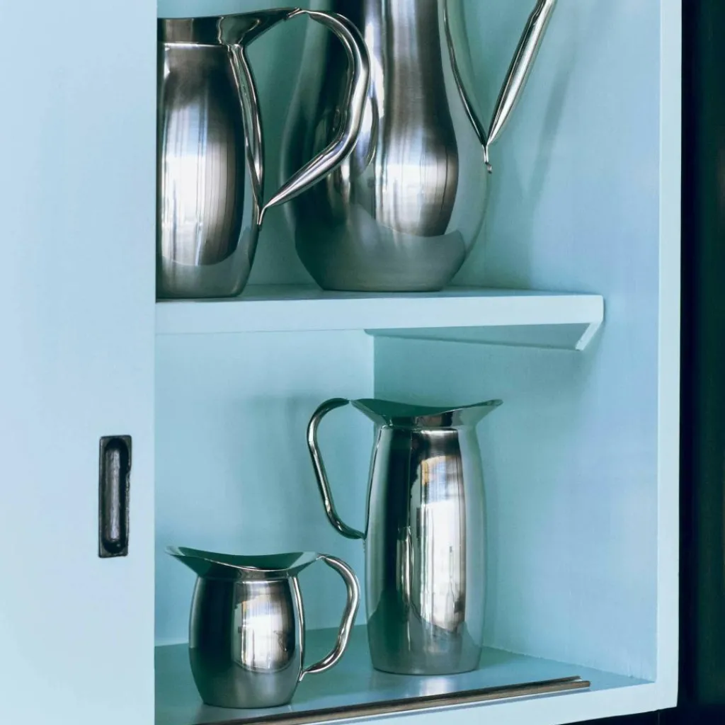 Mit seinem reduzierten Design und der spiegelnden Edelstahloberfläche bringt der Indian Krug XS eine moderne Eleganz in Küche, Büro oder Wohnbereich – ohne sich aufzudrängen. Dank seiner kompakten Größe von 10,2 cm Höhe, 13,3 cm Länge und 8,5 cm Breite eignet sich der kleine Krug ideal für Milch, Dressings oder kleinere Mengen an Getränken. Ideal für den Frühstückstisch, zur Kaffeetafel am Nachmittag oder als minimalistisches Deko-Objekt mit funktionalem Anspruch. Gefertigt aus 100 % Edelstahl, ist der Krug mit 200 g leicht. Er ist zudem langlebig und pflegeleicht. Der stabile Henkel sorgt für eine komfortable Handhabung, während der breite und gut geformte Auslauf das Ausgießen sicher und tropfarm gestaltet. Seine schlichte Silhouette macht den Indian Krug XS zu einem vielseitigen Begleiter für viele Gelegenheiten – ob in der Küche, auf dem Tisch oder im Büro.