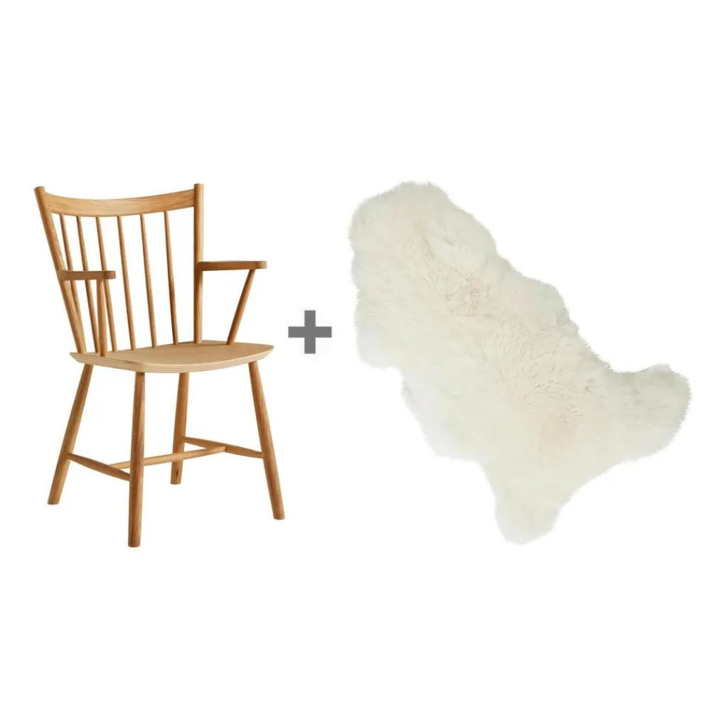 JAktionsset J42 Armlehnstuhl Eiche mit Fell wurde von Poul M. Volther für die Marke HAY entworfen.