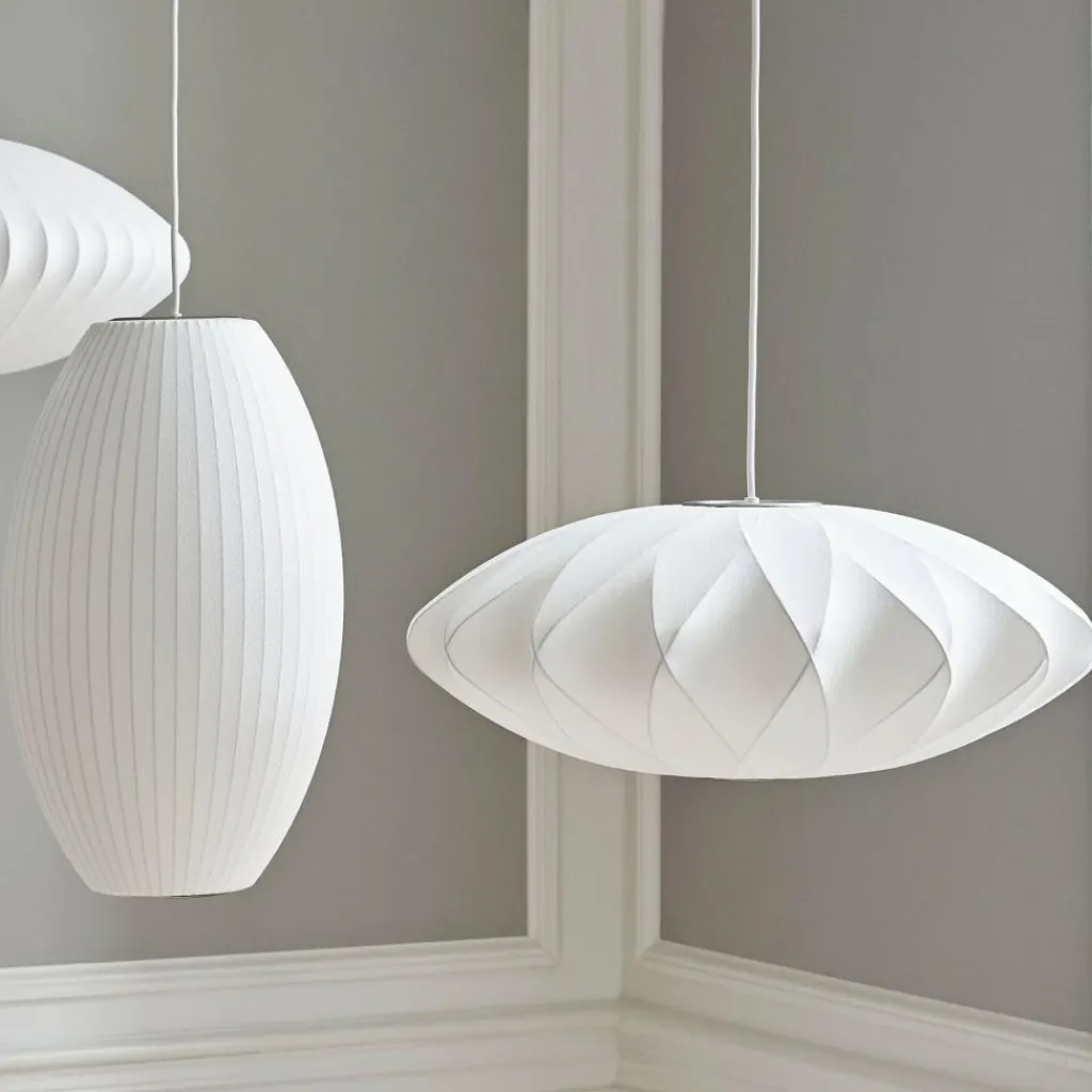 Gefertigt ist die Nelson Saucer Crisscross Bubble Pendelleuchte aus hochwertigem Polymergewebe, das als Spray auf ein dynamisch geformtes Gestell aus Stahldraht aufgetragen wurde. Dadurch entsteht eine zarte Oberfläche, die Licht durchscheinen lässt. Somit spendet die Nelson Saucer Crisscross Bubble Pendelleuchte blendfreies Licht. Das macht sie zur optimalen und stilvollen Beleuchtung für jeden Esstisch, das Wohnzimmer oder den Schreibtisch.