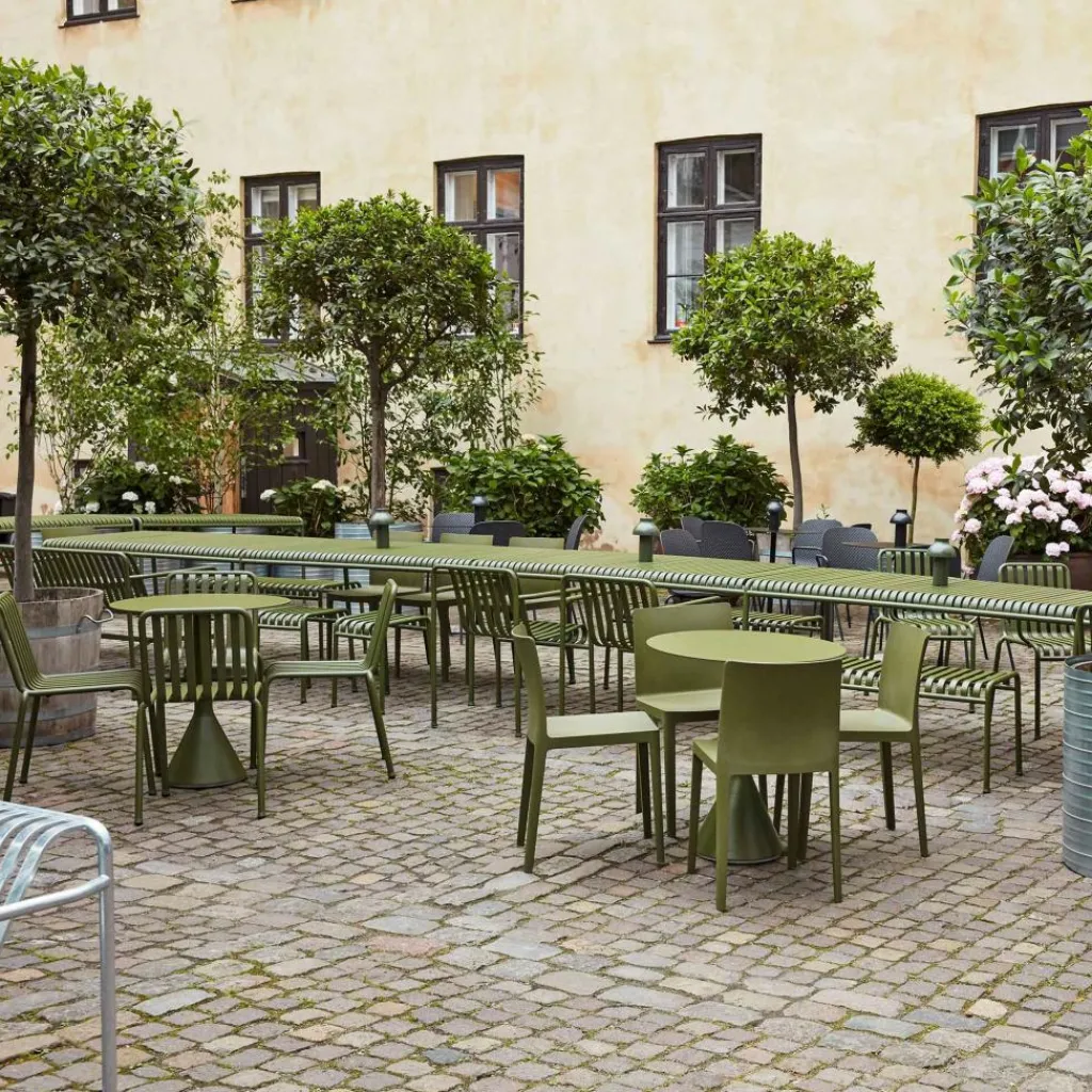 Mit seiner Größe von 47 x 80 x lebt sich der Palissade Stuhl stilvoll in die umgebende Einrichtung ein. Dabei überzeugt er mit seiner hochwertigen Materialzusammenstellung, dem unkonventionellen Linienkonzept und der pragmatischen Vielfalt. Der Palissade Stuhl von Ronan und Erwan Bouroullec besteht nämlich aus pulverbeschichtetem Stahl, dank dem er ideal für den Außenbereich geeignet ist. Darüber hinaus lässt sich der in den Farben Oliv, Hellgrau und Anthrazit erhältliche Stuhl von HAY ganz problemlos stapeln. So ist man damit ideal auf jede Anforderung vorbereitet.