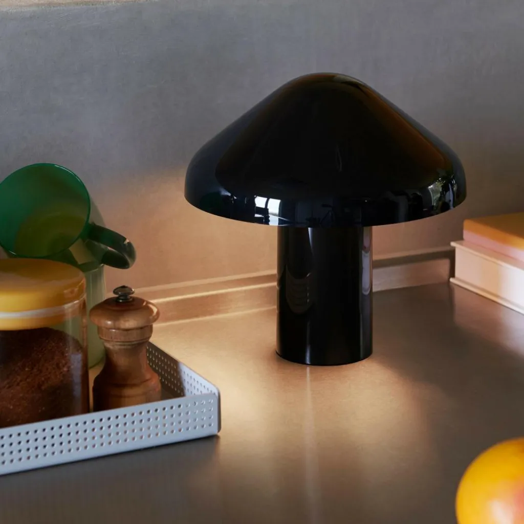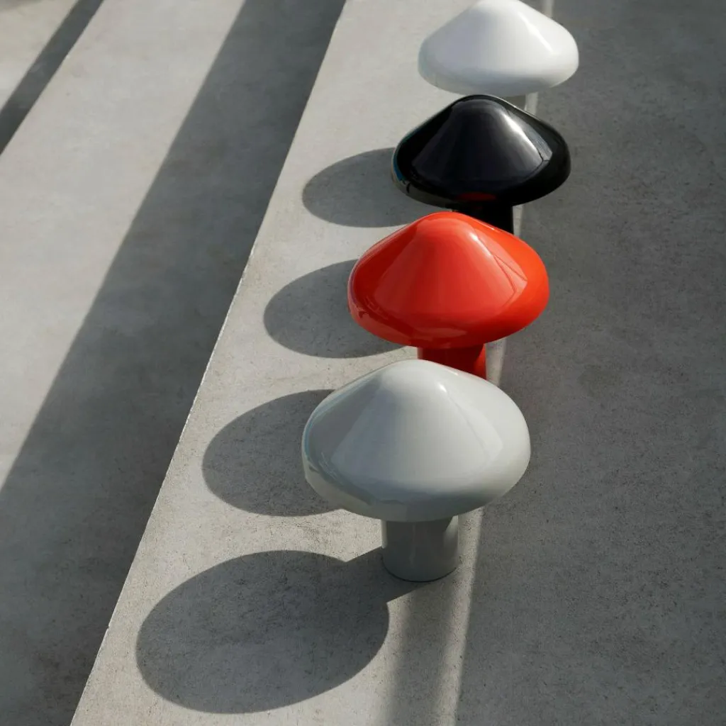 Das Design der Pao Akkuleuchte besticht durch seine Schlichtheit: Über einem zylindrischen Schaft sitzt ein pilzförmiger Schirm, der das Licht durch einen opalen Diffusor nach unten wirft und einen weichen Lichtkegel erzeugt. Beide Teile bestehen aus Polycarbonat, das dank seiner Hochglanzoberfläche Reflexionen erzeugt an der Außenseite des Schirms durch Spiegelung des natürlichen Tageslichts und am Leuchtenfuß durch Abstrahlung des Lichtscheins. Neben dem angenehmen und blendfreien Licht machen ihre homogenen Proportionen die Pao Akkuleuchte zu einem dekorativen Lichtobjekt, das stufenweise dimmbar ist und sich dank des aufladbaren Akkus nicht nur im Innenraum, sondern auch auf der Terrasse oder überall im Garten platzieren lässt.