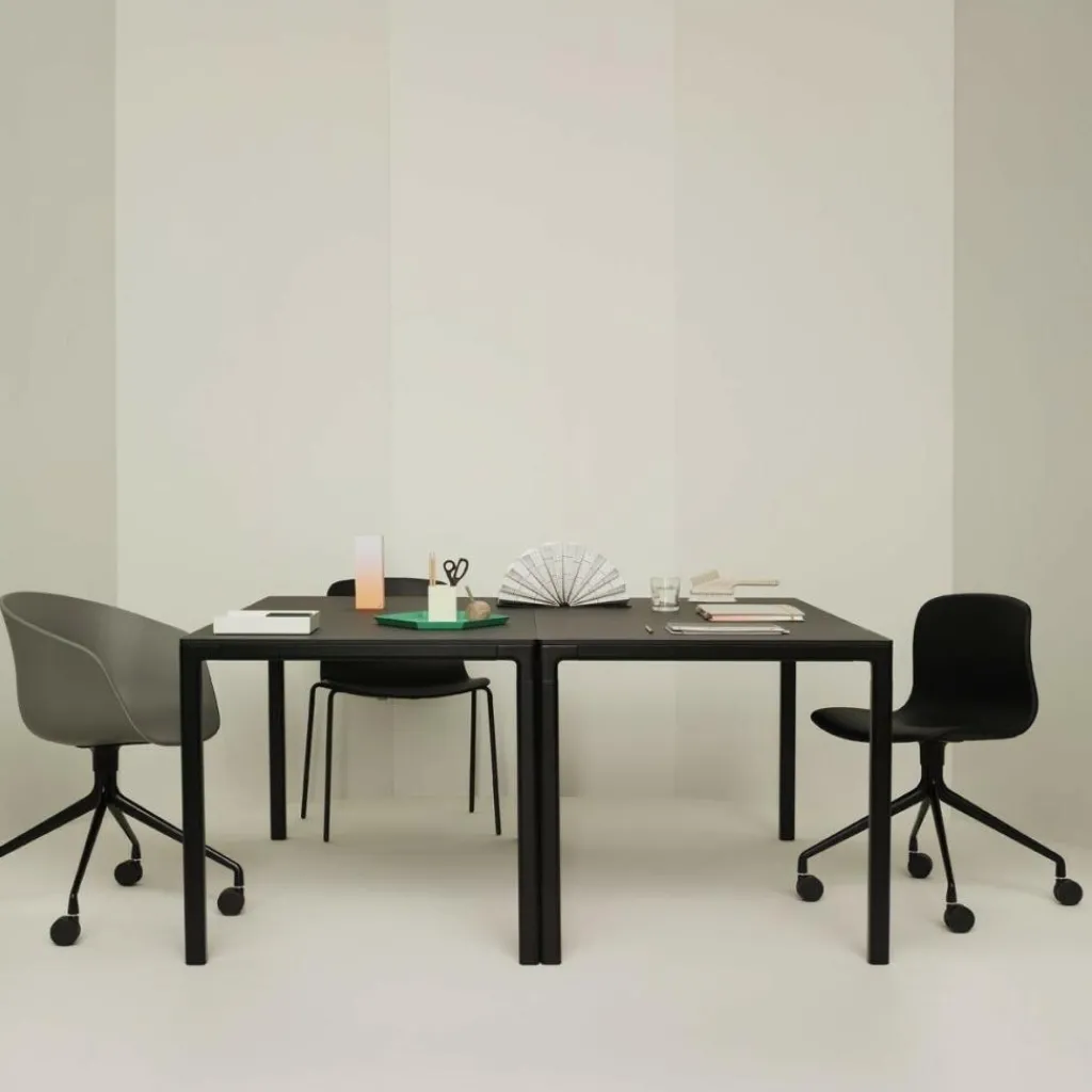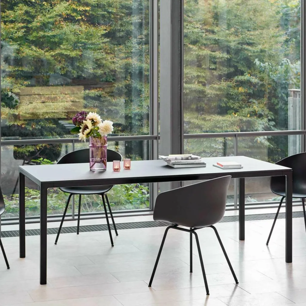 Der T 12 Tisch von HAY kann nicht nur als klassischer Schreibtisch oder Konferenztisch, sondern auch als großzügiger Esstisch verwendet werden und lädt zu kreativen Meetings ebenso ein wie zum gemütlichen Beisammensitzen.