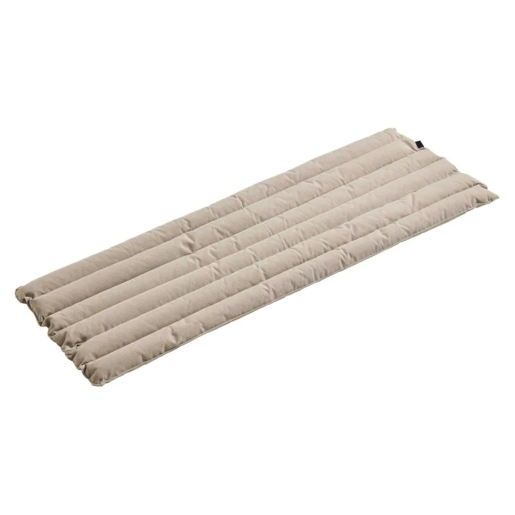 Das Traverse Steppsitzkissen für Dining Gartenbank von HAY bringt weichen Sitzkomfort auf geradlinige Gartenmöbel und wurde speziell für die Traverse Dining Gartenbank entworfen.