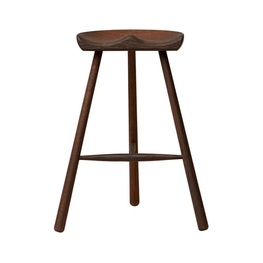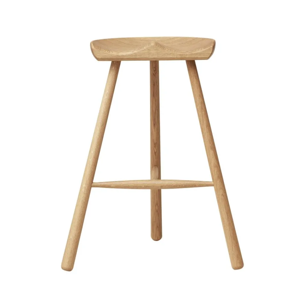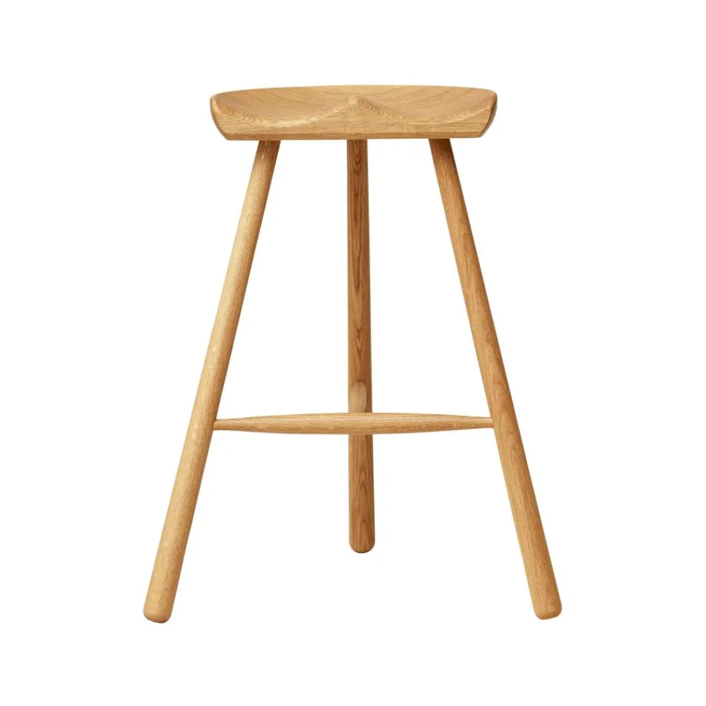 Aus einem Stück massivem Holz entsteht der Shoemaker Nr. 68™ Barhocker.Es gibt ihn in verschiedenen Holzarten und Farbtönen. Natürliche Maserungen sind erwünscht und machen jedes Exemplar zum Unikat. Das Material trägt das FSC®-Siegel und ist somit umweltfreundlich gewachsen. Klar und deutlich ist der typisch skandinavische Stil erkennbar. Das Modell erinnert an einen Schemel, die früher Schustern als Sitzgelegenheit diente. Diese Silhouette erklärt auch den Namen. Drei abgerundete Stuhlbeine dienen als Basis. Sie sind mit Querstreben verbunden, die zusätzliche Stabilität geben und noch dazu als Abstellmöglichkeit für die Füße dienen. Obwohl der Shoemaker Nr. 68™ Barhocker schlicht wirkt, steckt ein ausgeklügeltes Design dahinter: Die Sitzfläche wurde nämlich anatomisch geformt. Kein Wunder, dass man gerne länger auf dem Möbelstück verweilt.
