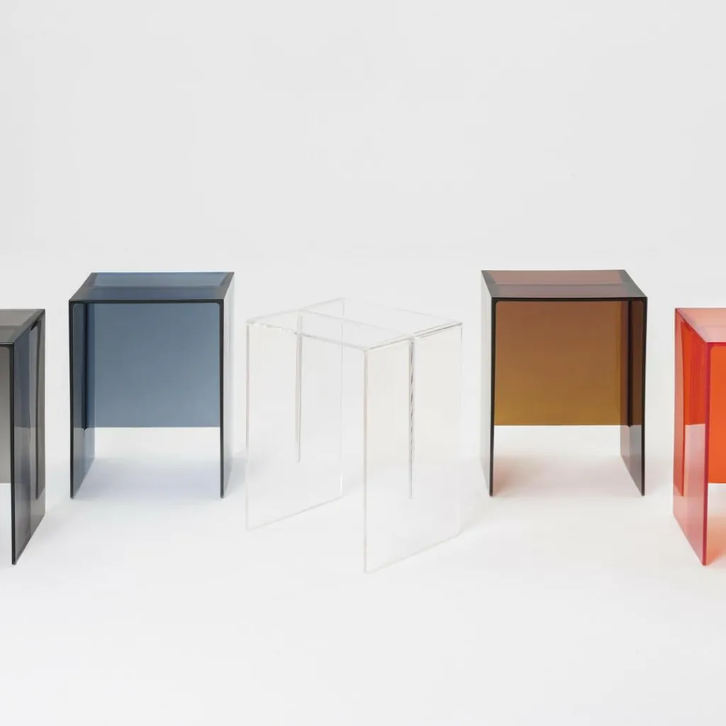 Der Laufen Max-Beam Hocker/Beistelltisch wurde von Roberto und Ludovica Palomba für die Marke Kartell entworfen. Inspiration fanden die beiden Designer im klassischen Ulmer Hocker, der von Max Bill in den 1950er-Jahren entworfen wurde. Der Name ist eine Hommage an den Designer des beliebten Möbelstücks.