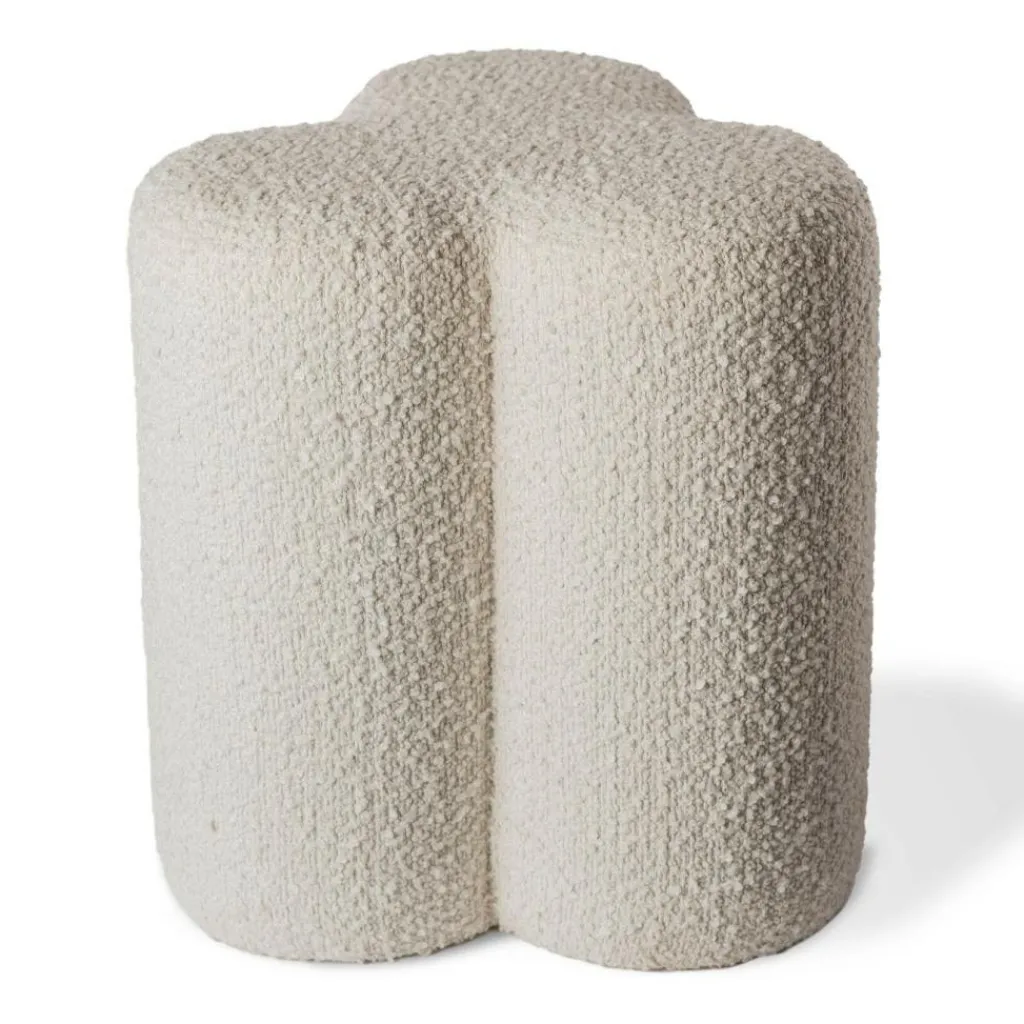 Der Clover Hocker ist in verschiedenen Farben zu haben. Er wird in jedem Umfeld zum Blickfang und wird aus drei Säulen geformt, die in der Mitte zu einer Einheit zusammenlaufen. Somit handelt es sich beim Clover Hocker um ein Möbelstück, das völlig ohne Ecken entworfen wurde. Für Stabilität sorgt ein gepolsterter Holzrahmen. Um heikle Böden zu schonen, sind an der Unterseite Filzgleiter montiert. Die Oberfläche besteht aus hochwertigem Stoff. Er zeichnet sich mit bester Haptik aus. Somit nimmt man gerne auf dem Clover Hocker Platz. Der Stoff besteht zu 97 Prozent aus Polyester und zu 3 Prozent aus Polyacryl. Der Hocker dient als zusätzliche Sitzgelegenheit, wenn Gäste kommen. Doch auch zum Hochlagern der Füße beim Fernsehen, Lesen oder Entspannen wird er gerne verwendet.