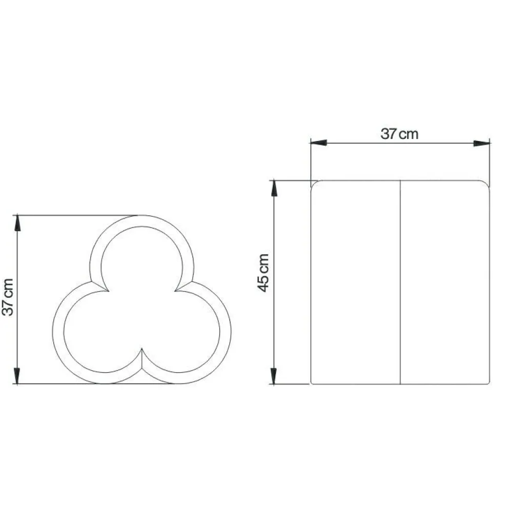Der Clover Hocker wurde vom pols potten Studio für die Marke pols potten entworfen. Einmal mehr überrascht das Designerstudio mit einem originellen Entwurf. Inspiration fand es in den 1970er-Jahren. Der Name leitet sich vom englischen Wort für Kleeblatt ab. Und genauso sieht der Clover Hocker von oben betrachtet auch aus.