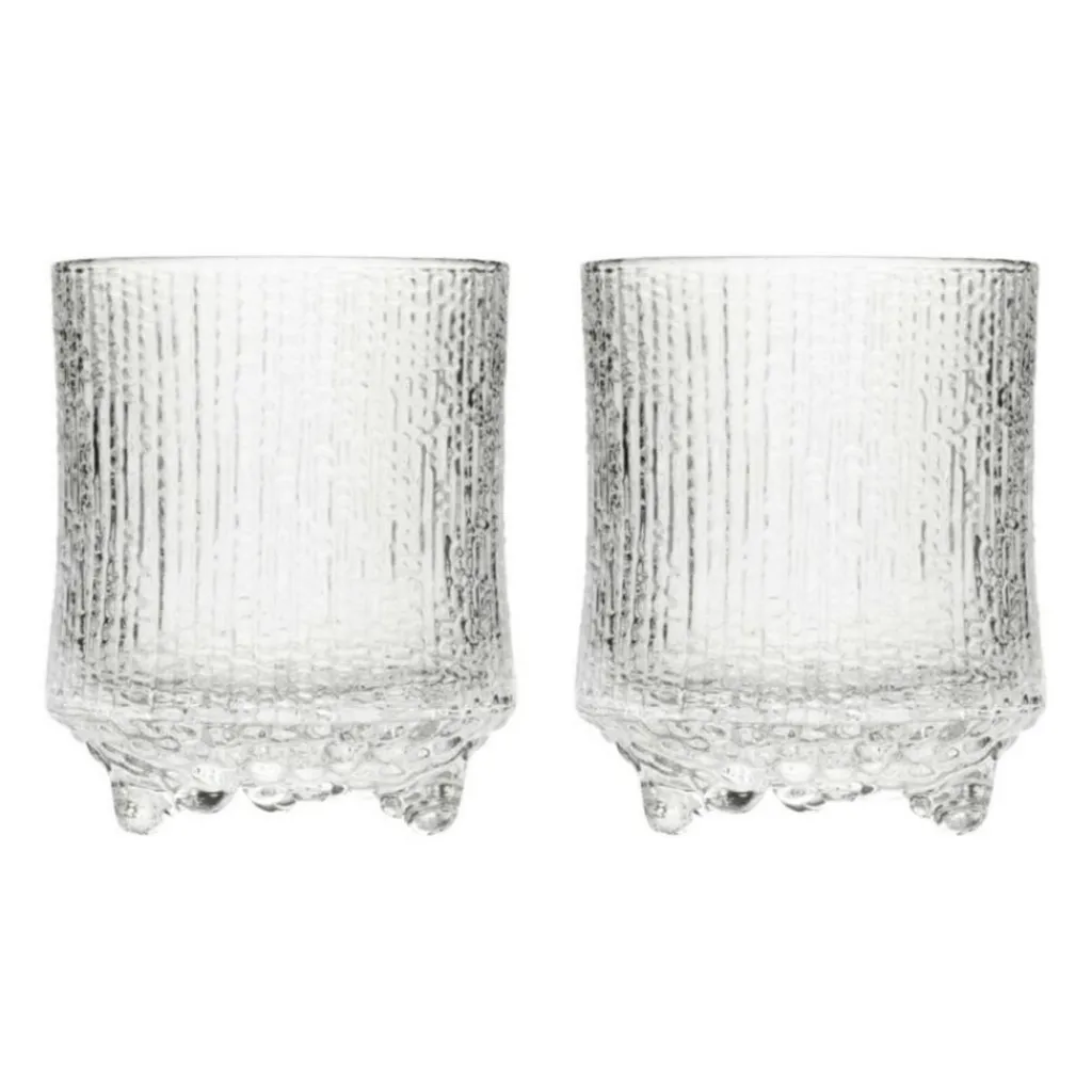 Das prägnant gestaltete Ultima Thule Wassergläser-Set 2tlg. wurde von Designer Tapio Wirkkala 1968 für das finnische Label Iittala designt. Die rauhen Wassergläser haben einen winterlichen Look, der für einen stärkeren Eindruck der Frische sorgt.