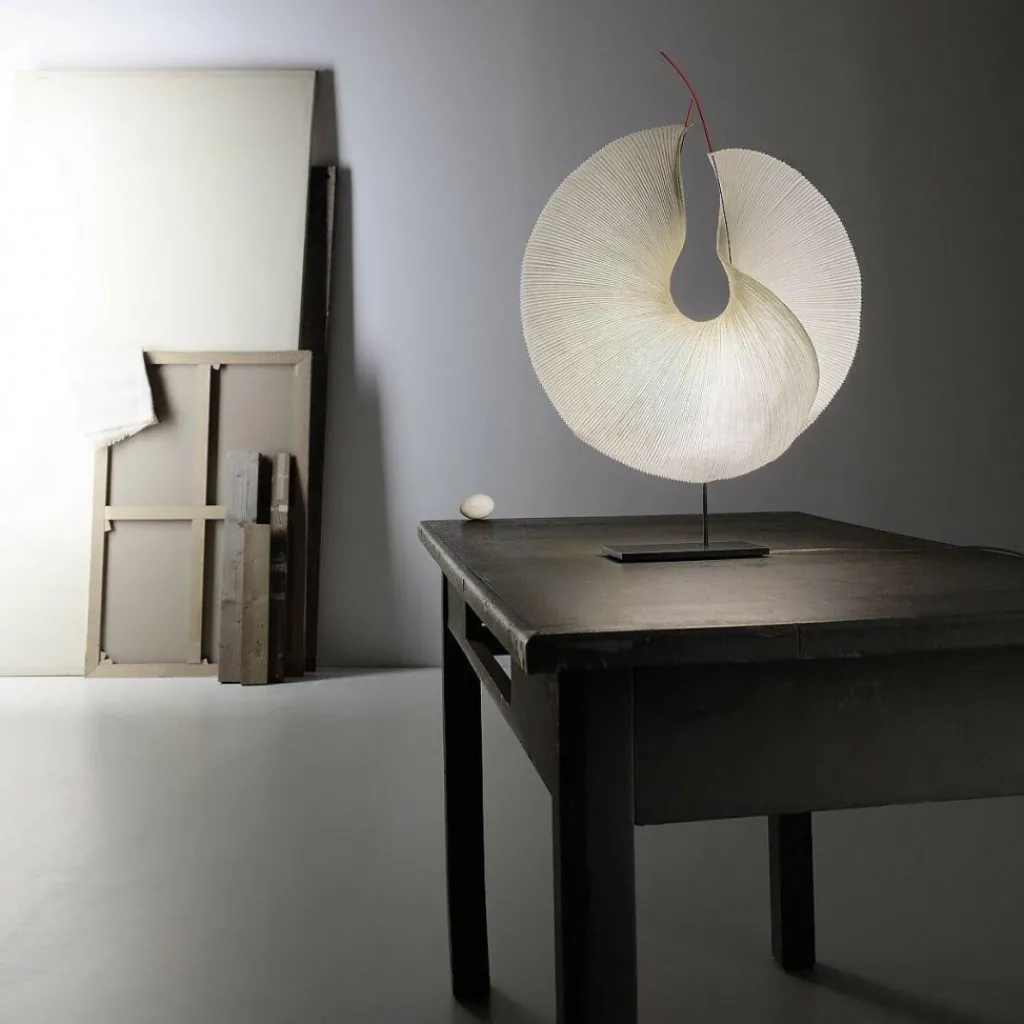 Die formschöne und edle Yoruba Rose LED Tischleuchte wurde von Dagmar Mombach zusammen mit Ingo Maurer für dessen gleichnamiges Label entworfen. Die gesamte Lampenkollektion bezieht sich auf den Designer und Bildhauer Isamu Noguchi, der der Schöpfer der bekannten Papierlampen-Serie „Akari“ ist. Die Lampen punkten durch eine einzigartige Verbindung aus Sanftmut und Poesie.