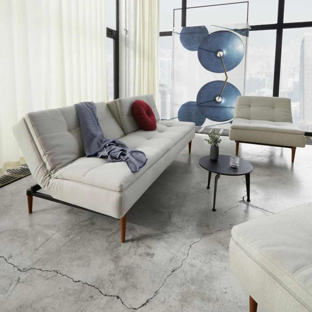 Das Dublexo Styletto Schlafsofa Holz dunkel 210x91cm wurde von Per Weiss für die Marke Innovation Living entworfen. Während das dänische Label zunächst für die bequemen Sitzsäcke in den 70er-Jahren bekannt war, etablierte es sich seit 1989 als bester Ansprechpartner für stilvolle Schlafsofas.