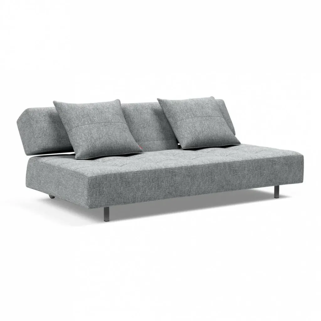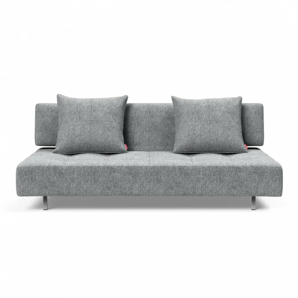 Das elegante Long Horn Excess Schlafsofa 210x114cm begeistert mit seiner großen Sitztiefe von 72cm, die zum entspannten Sitzen und Relaxen nach Feierabend einlädt. Das Rückenelement in T-Form verfügt über einen praktischen Klappmechanismus, der es erlaubt, das Sofa mit wenigen Handgriffen in ein Bett zu verwandeln. Mit der minimalistischen kubischen Formensprache, die durch die Steppung des grobgewobenen Stoffes zusätzlich unterstrichen wird, können Sie dieses Möbelstück ohne Schwierigkeiten sowohl im Wohnzimmer als auch im Büro platzieren. Das auf eckig geformten Edelstahlbeinen stehende Long Horn Excess Schlafsofa 210x114cm besitzt eine Breite von 210cm und im ausgelegten Zustand eine Tiefe von 114cm, die zwei Personen nebeneinander bequem Platz bietet. Im Inneren des Möbelstücks ist eine vollwertige Taschenfederkern-Matratze zu finden, die im Hinblick auf den Liegekomfort einem Bett in nichts nachsteht.