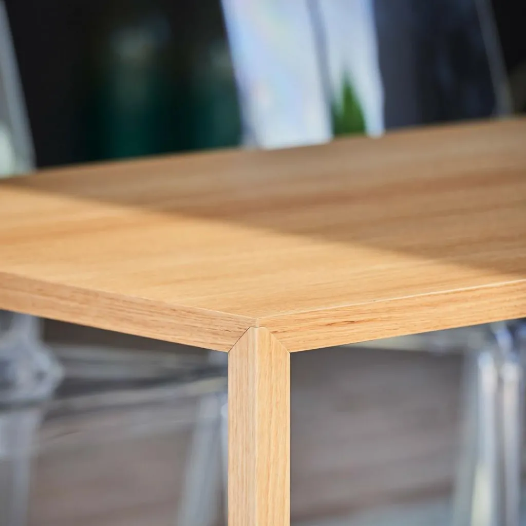 Der Cloud 2.0 Esstisch besteht aus hochwertigem Echtholzfurnier in Eiche, das dem Möbel einen natürlichen Charme verleiht. Die feine Holzmaserung belebt die Oberfläche und verleiht ihr einen besonderen Reiz. Die robusten Tischbeine sorgen für optimale Standfestigkeit. Damit der Tisch sein attraktives Aussehen behält, ist es empfehlenswert, das Möbel ab und zu mit einem Holzpflegemittel zu behandeln.