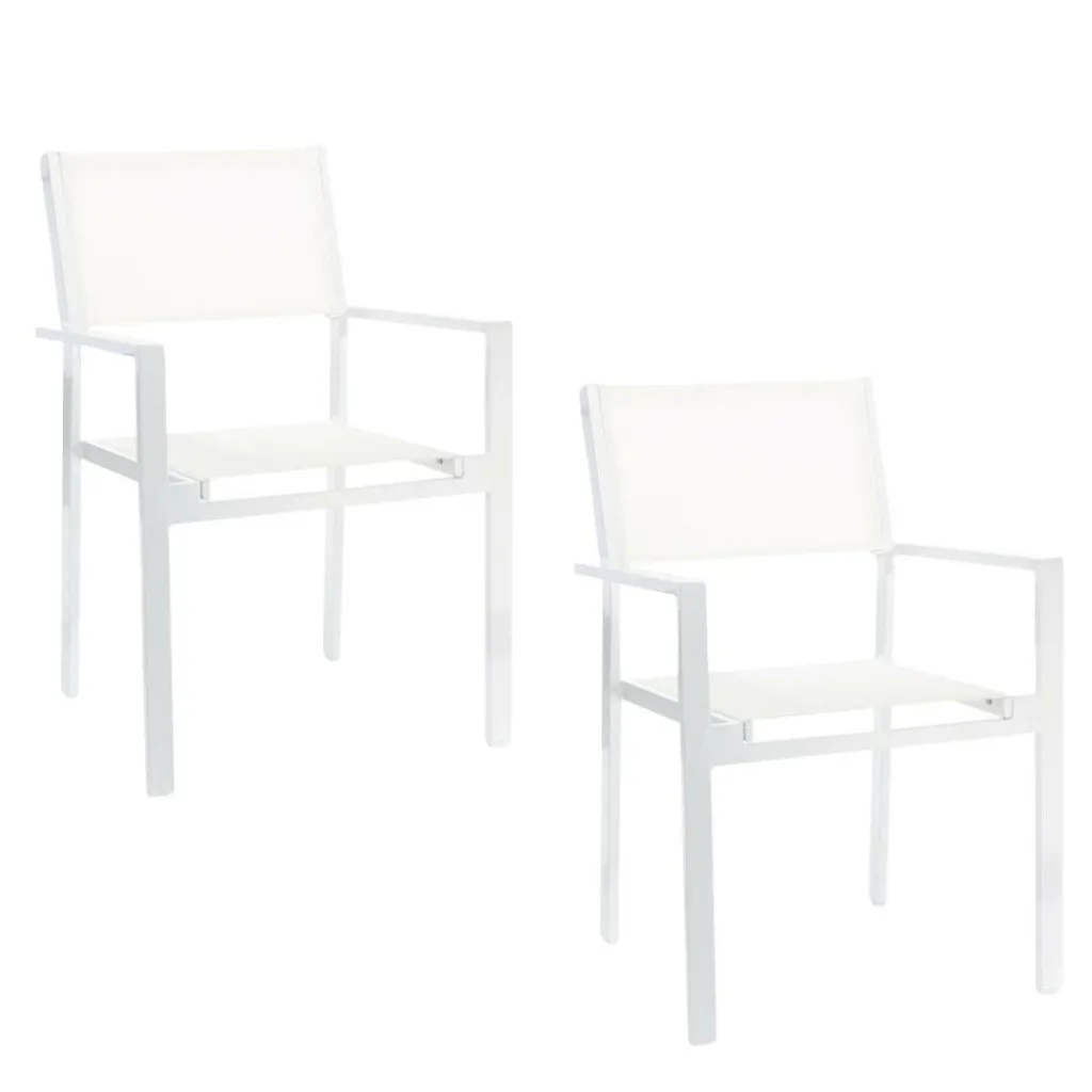 Klare minimalistische Linien und eine elegante weiße Farbgebung – das sind die wesentlichen Elemente des Cubic Gartenarmlehnstuhl 2er Sets. Mit diesem Design fügen sich die 57 x 85 x 45 cm großen Stühle bescheiden und harmonisch auf Ihrer Terrasse und in Ihrem Garten ein. Dank der bequemen Sitzhöhe von 46 cm sitzen Sie dabei besonders entspannt und bequem. Abgerundet wird das raffinierte Gesamtbild durch die Herstellungsmaterialien, für die sich Jan Kurtz hier entschieden hat. Das Cubic Gartenarmlehnstuhl 2er Set bersteht aus Aluminium. Die Bezüge sind aus Textilene gefertigt.