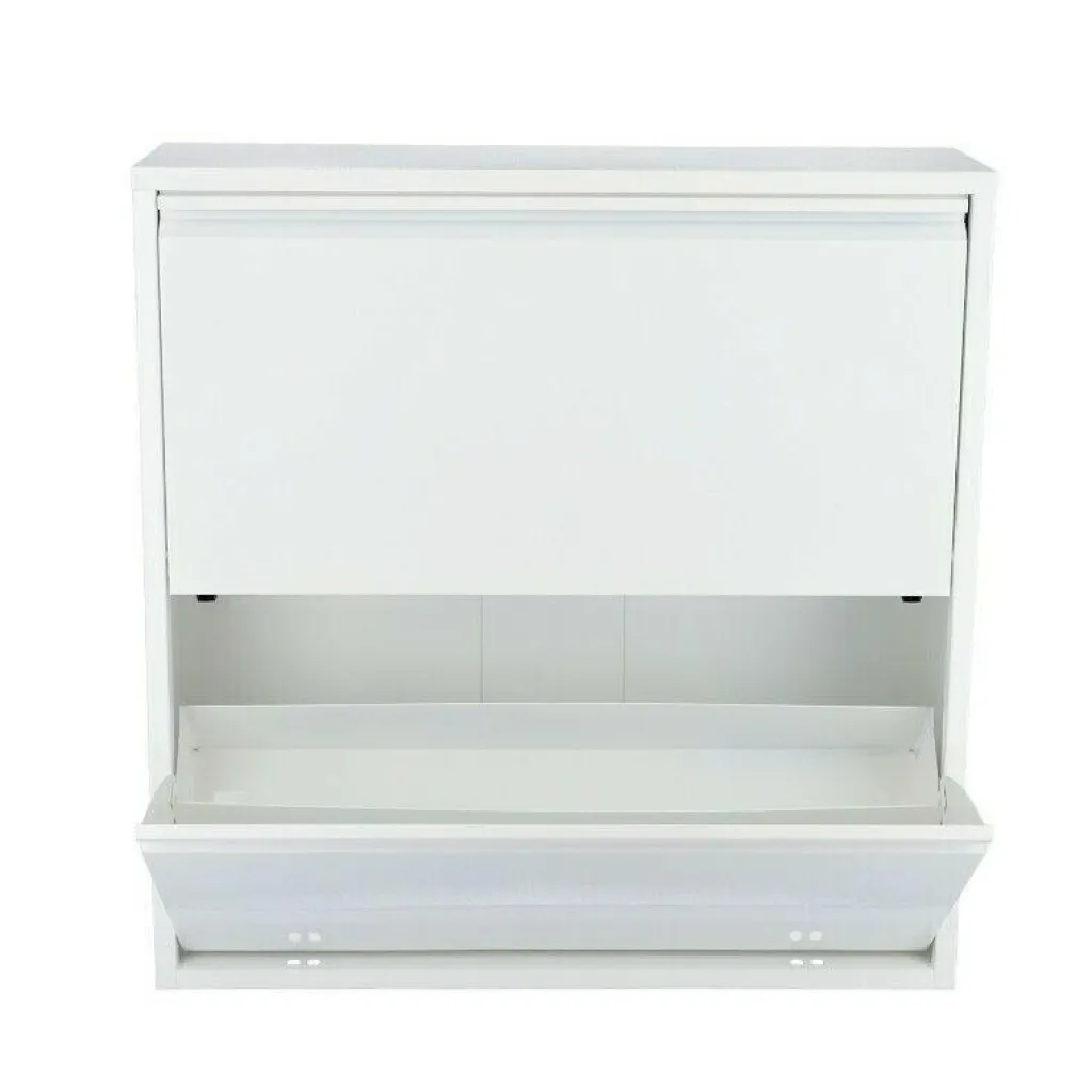 Funktionalität und schlichtes Design vereint der Double Large 2 Schuhschrank. Sein Design beschränkt sich auf ein Minimum: Er besteht aus einem rechteckigen Kasten und zwei aufklappbaren Fächern. Eine Griffleiste erleichtert das Öffnen und Schließen des Double Large 2 Schuhschranks.Die beiden Fächer bieten viel Stauraum: Bis zu zwölf Paar Schuhe bis Größe 47 passen hinein. Der Double Large 2 Schuhschrank eignet sich für den Flur und Eingangsbereich. Auch in einem Abstellraum findet er gerne Verwendung. Der Schuhschrank kann auf den Boden gestellt oder in beliebiger Höhe an der Wand montiert werden. Der in verschiedenen Farben erhältliche Double Large 2 Schuhschrank wird aus pulverbeschichtetem Stahl hergestellt. Die Oberfläche ist glänzend oder halb glänzend gestaltet. Sollte sich Schmutz von den Schuhsohlen im Schrank ansammeln, kann man ihn mit einem feuchten Tuch entfernen.