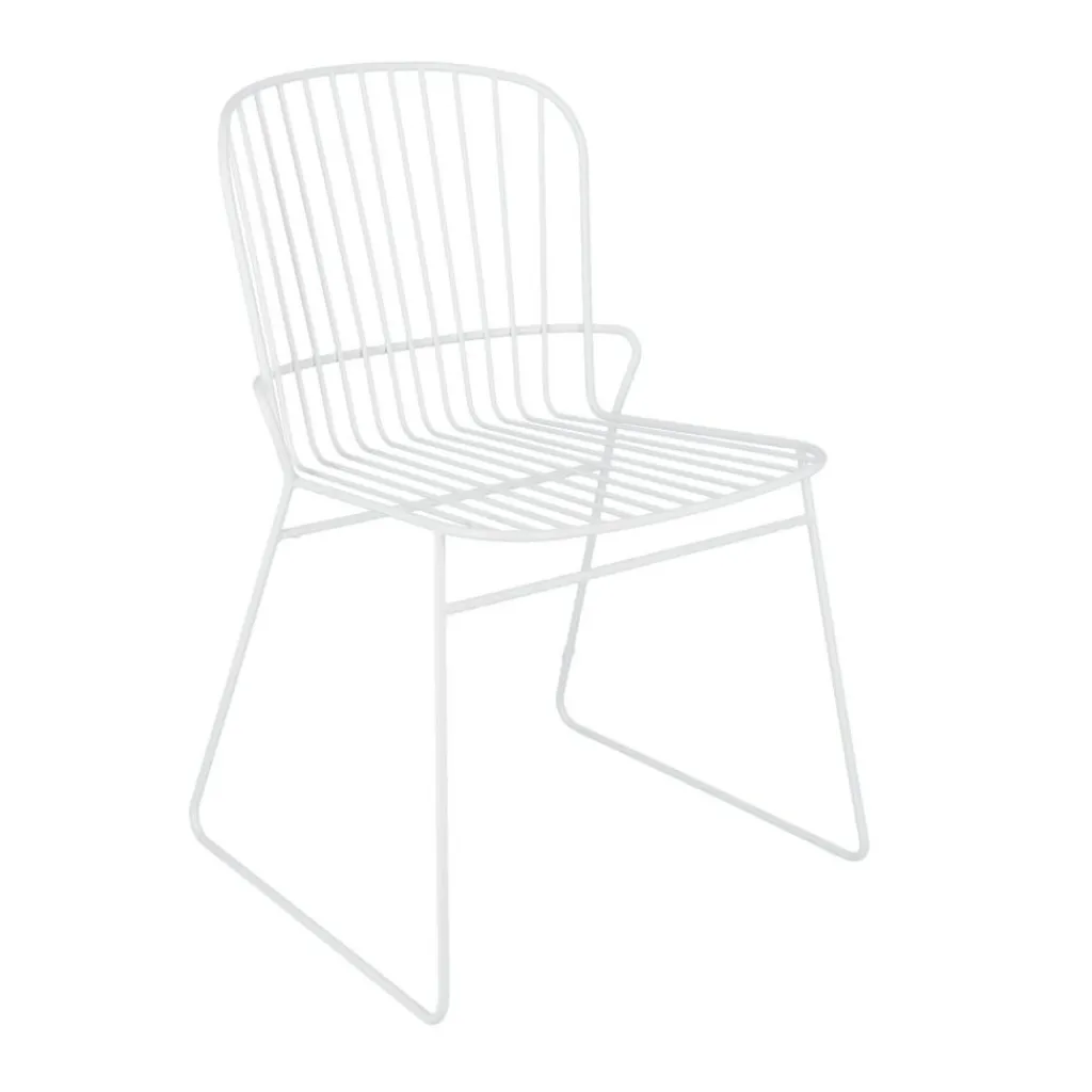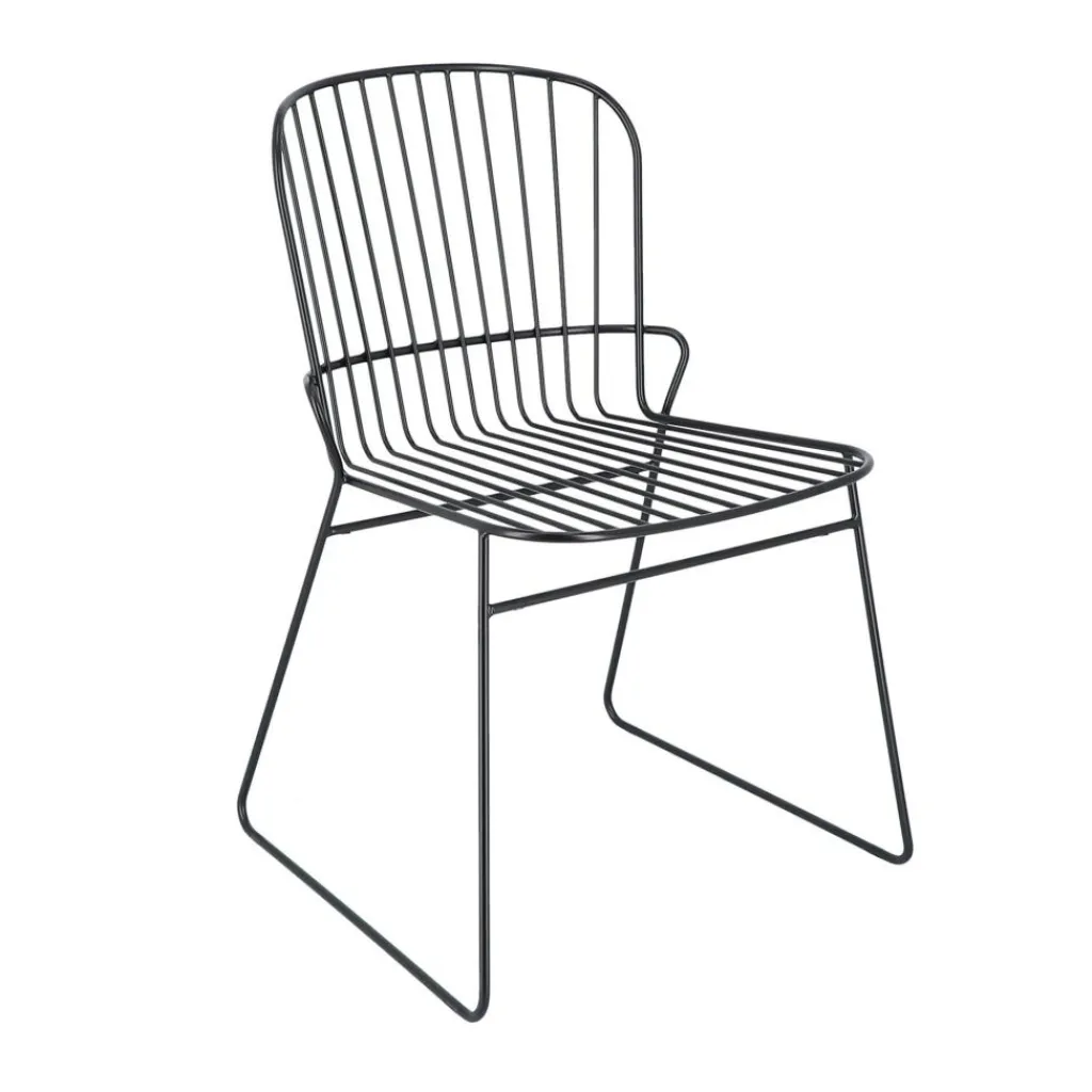 Der Ferly Gartenstuhl hält jeder Witterung stand. Er wird aus pulverbeschichtetem Stahl hergestellt. Die Sitzfläche und die Rückenlehne sind aus dünnen Stahlrohren gemacht. Die vertikal verlaufenden Streben der Rückenlehne werden an der Oberkante in einem abgerundeten Rahmen eingefasst. Eine Querstrebe verstärkt die Rückenlehne. Für sicheren Stand sorgen zwei Kufen, die am Boden jeweils zwei Beine verbinden. An der Vorder- und Rückseite ist das Gestell mit Querstreben versehen. Der in verschiedenen Farben erhältliche Ferly Gartenstuhl kann auch bei schlechtem Wetter im Freien bleiben. Nässe wird mit einem weichen Tuch abgewischt, bei Schmutz wird warme Seifenlauge zur Reinigung empfohlen. Da der Ferly Gartenstuhl stapelbar ist, kann er nach einer Gartenparty platzsparend verstaut werden. Bis zu sechs Stück lassen sich übereinanderstellen.