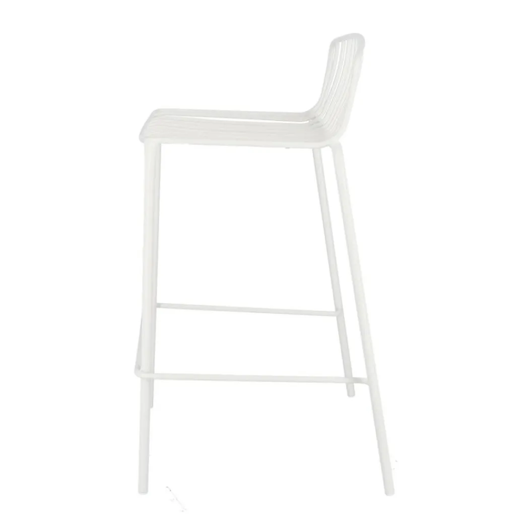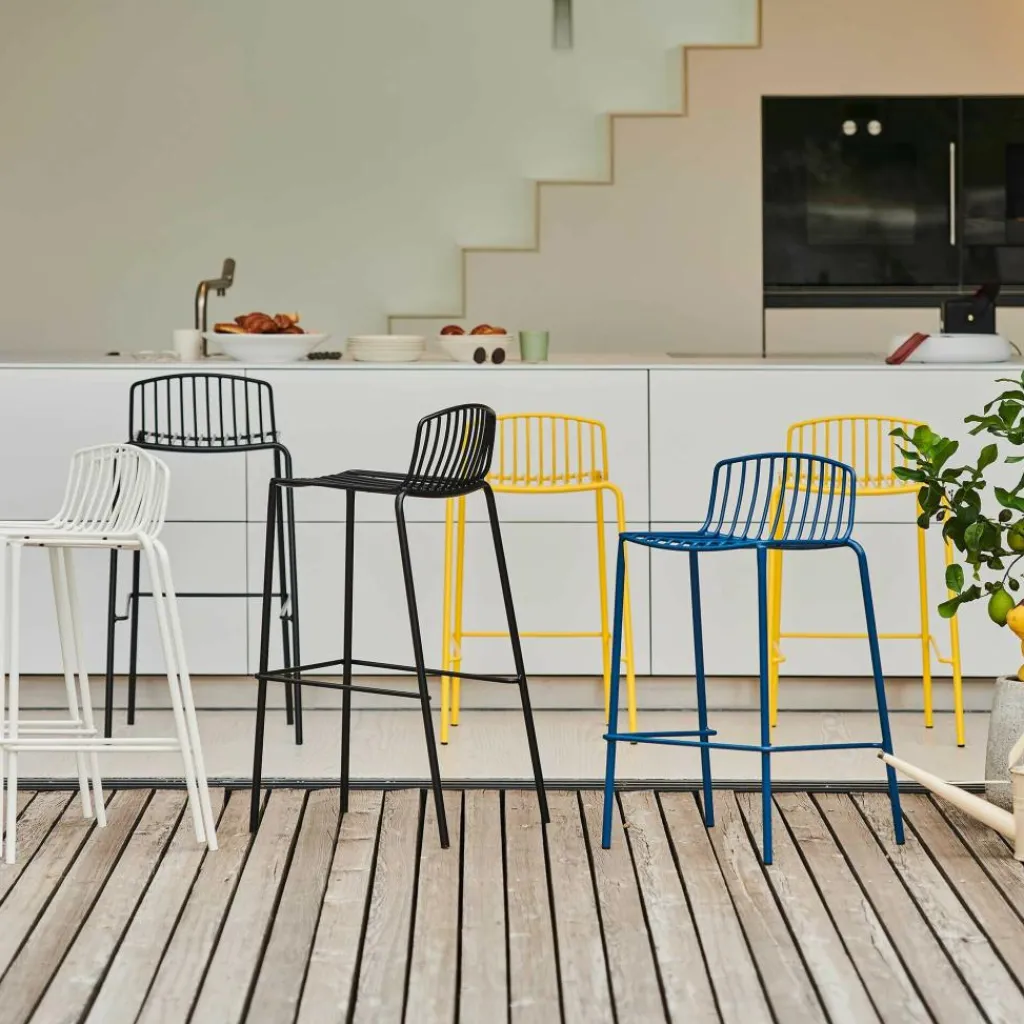 Für entspannte Momente im Außenbereich ist der Mori Gartenbarstuhl 65cm die perfekte Wahl. Er setzt aber nicht nur auf Balkon und Terrasse einen modernen Akzent, sondern überzeugt auch im Esszimmer und an der Kücheninsel mit seiner filigranen Gestalt. Das Design des Barstuhls wird durch schmale, fortlaufende Verstrebungen an der leicht konkaven Sitzfläche und der kurzen, oben abgerundeten Rückenlehne geprägt. Darüber hinaus verfügt der Stuhl über ein schlankes Gestell mit vier Beinen und schmalen Fußstützen, die vorne und an den Seiten Komfort und Stabilität schenken. Das bis 4 Stück stapelbare Modell ist aus pulverbeschichtetem Stahl hergestellt, der wetterbeständig den Elementen im Freien trotzt. Erhältlich ist das Sitzmöbel in unterschiedlichen neutralen und leuchtenden Farben, die sowohl allein als auch in Kombination drinnen und draußen optimal zur Geltung kommen.