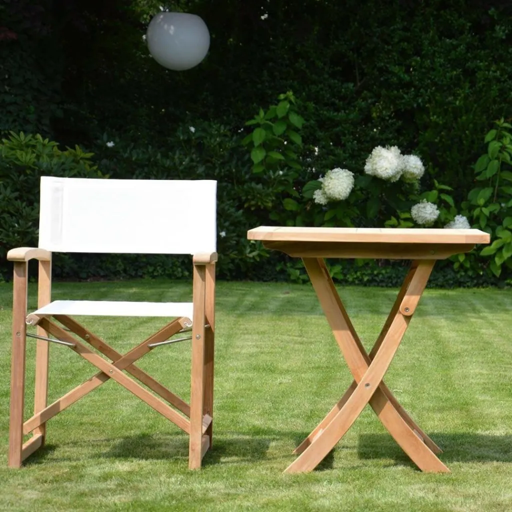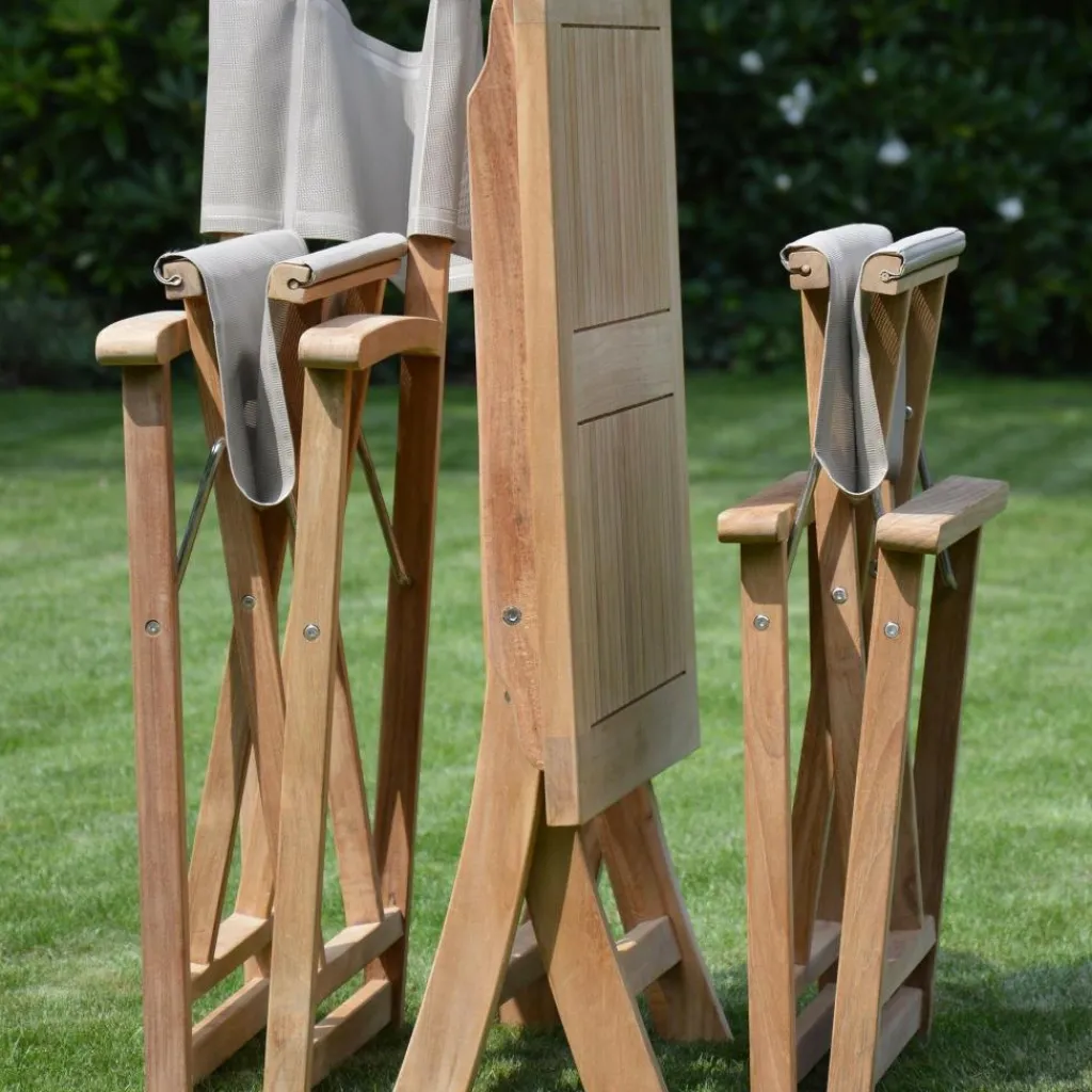 Zum edlen Aussehen des Urban Regiesessels tragen hauptsächlich die hochwertige Holzauswahl und die ungewöhnliche Querstrebenoptik bei. Die eleganten Teakstreben sind nämlich überkreuzt angeordnet, sodass der Regiesessel von Jan Kurtz einerseits besonders stabil ist und andererseits eine ganz eigene Bewegtheit ausstrahlt. Damit passt dieses Design hervorragend in den Garten und auf die Terrasse. Auch an anderer Stelle weiß dieses natürliche Sitzmöbelstück aus dem Hause Jan Kurtz zu begeistern. Erst ist hier einmal die Stoffbespannung des 52 x 86 x 58 cm großen Regiesessels zu nennen. Sie passt sich optimal an die Körperkonturen des Sitzenden an.