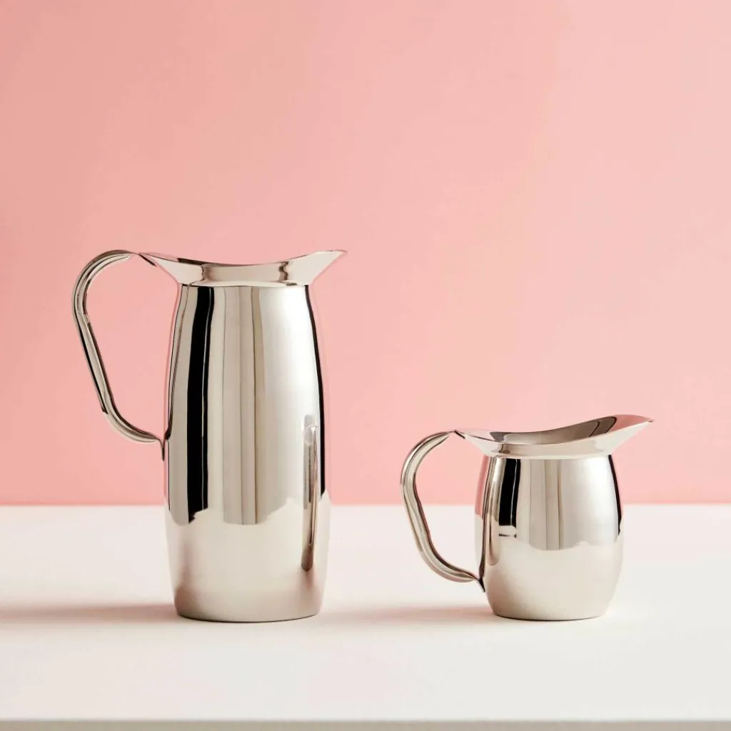 Wer klare Linien und durchdachte Schlichtheit schätzt, wird beim Indian Krug Tall von HAY fündig. Mit seiner hohen, schlanken Silhouette und dem dezenten Glanz des Edelstahls ist dieser Krug ein modernes Statement für jede Tafel. Gefertigt aus widerstandsfähigem Edelstahl, überzeugt der Krug nicht nur durch seine Optik, sondern auch durch seine Alltagstauglichkeit. Er ist leicht und wiegt nur 360 g, liegt dank des gut geformten Henkels sicher in der Hand und eignet sich ideal zum Ausschenken von kalten oder warmen Getränken. Die Kombination aus Funktionalität und Ästhetik macht ihn zu einem vielseitigen Begleiter – vom Frühstück bis zum Abendessen. Der breite umlaufende Rand macht das Einschenken einfach und tropfsicher. Mit einer Höhe von 19,5 cm sowie einer Breite von 15 cm und einer Länge von 9,2 cm passt der Indian Krug Tall problemlos in offene Regale, Vitrinen oder auf den gedeckten Tisch. Trotz seines schlanken Formats bietet er ausreichend Volumen – ideal für Wasser, Säfte oder Eistee.