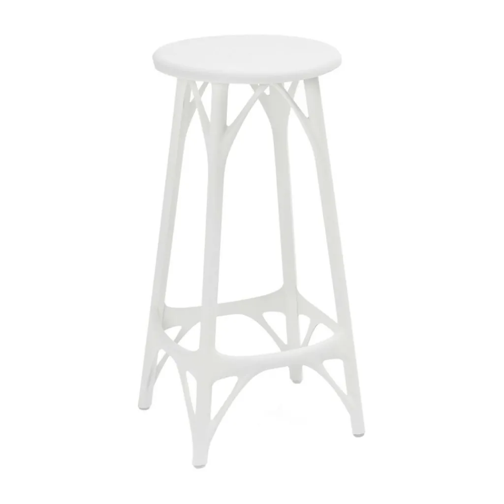 Der AI Light Barhocker 65cm wurde von Philippe Starck für die Marke Kartell entworfen. Wieder einmal hat der Stardesigner seine Qualitäten als Visionär bewiesen: Das Modell wurde nämlich durch künstliche Intelligenz entworfen. Das erklärte den Namen, der von der englischen Bezeichnung Artificial Intelligence stammt.