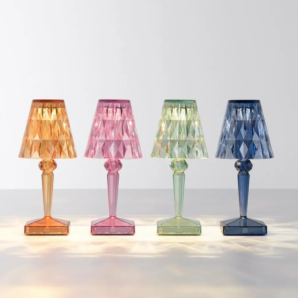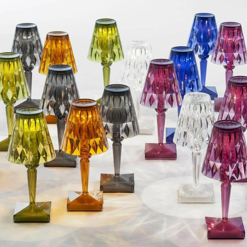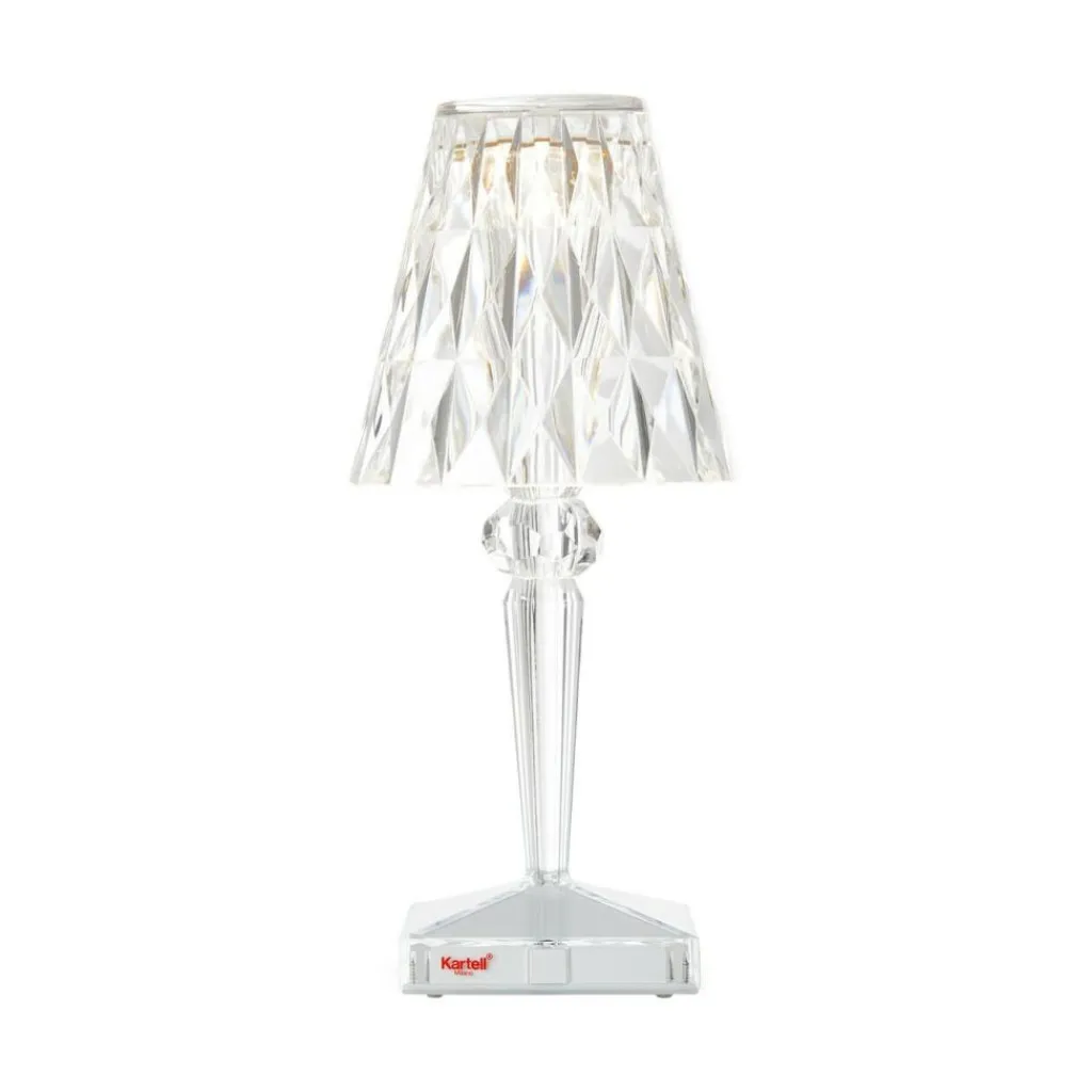 Die Battery LED Outdoor Tischleuchte mit Akku besteht aus dem transparenten Kunststoff PMMA. Mit nur 0,4 kg ist sie federleicht. Somit lässt sie sich flexibel am Rande eines Gartenwegs, auf dem Tisch, neben der Terrasse oder am Balkon platzieren. Aufgeladen wird die Leuchte mit einem USB-Kabel, das im Lieferumfang enthalten ist. Nach rund 5 h ist die Battery LED Outdoor Tischleuchte mit Akku vollständig aufgeladen. Dann spendet sie für 14.5 h Licht. Der Anschluss befindet sich im Leuchtenfuß. Auf der gegenüberliegenden Seite ist der Touch-Schalter zu finden. Laviani hat sich bei der Battery LED Outdoor Tischleuchte mit Akku für den Stil einer klassischen Tischleuchte entschieden: Auf einem quadratischen Plateau erhebt sich ein nach oben hin breiter werdender Stab. Der Leuchtenschirm ist als Kegelstumpf gefertigt.