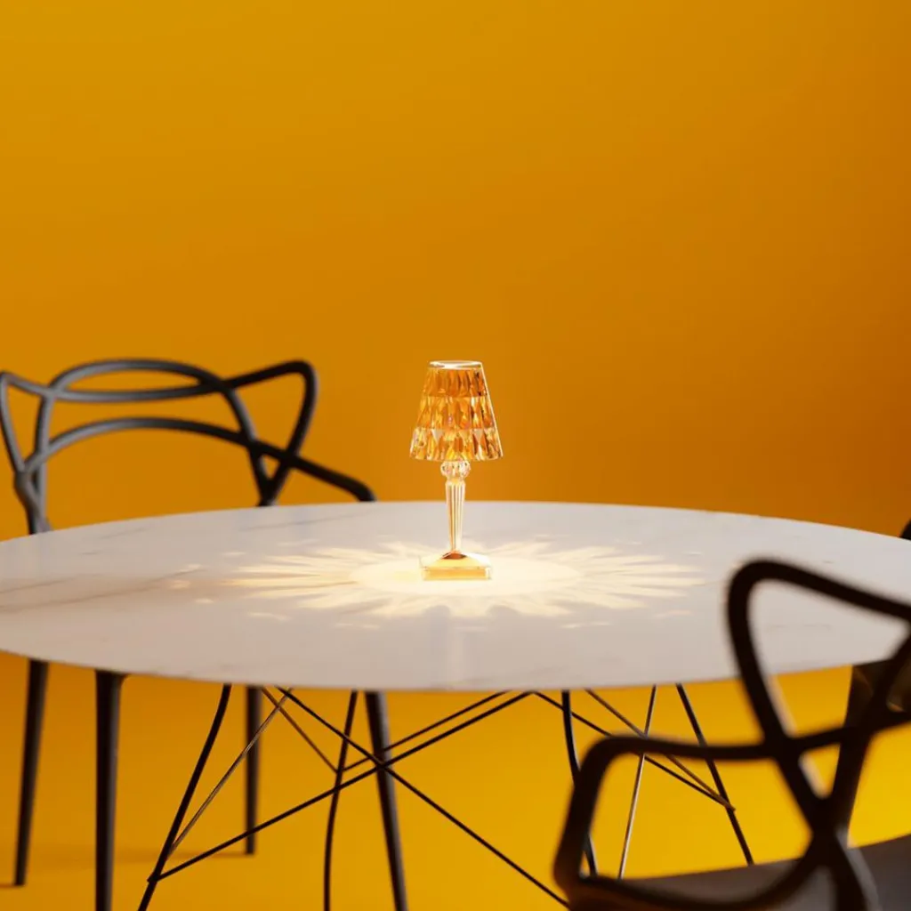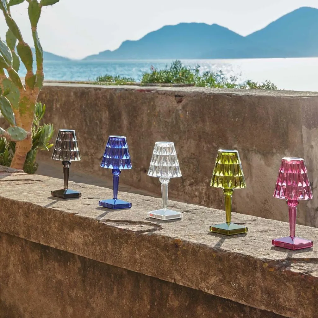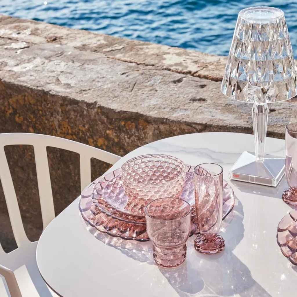 Die Battery LED Outdoor Tischleuchte mit Akku wurde von Ferruccio Laviani für die Marke Kartell entworfen. Sie ist in Schutzart IP54 gefertigt und somit perfekt für den Outdoorbereich geeignet. Da sie kabelungebunden funktioniert, lässt sich der Standort jederzeit wechseln.