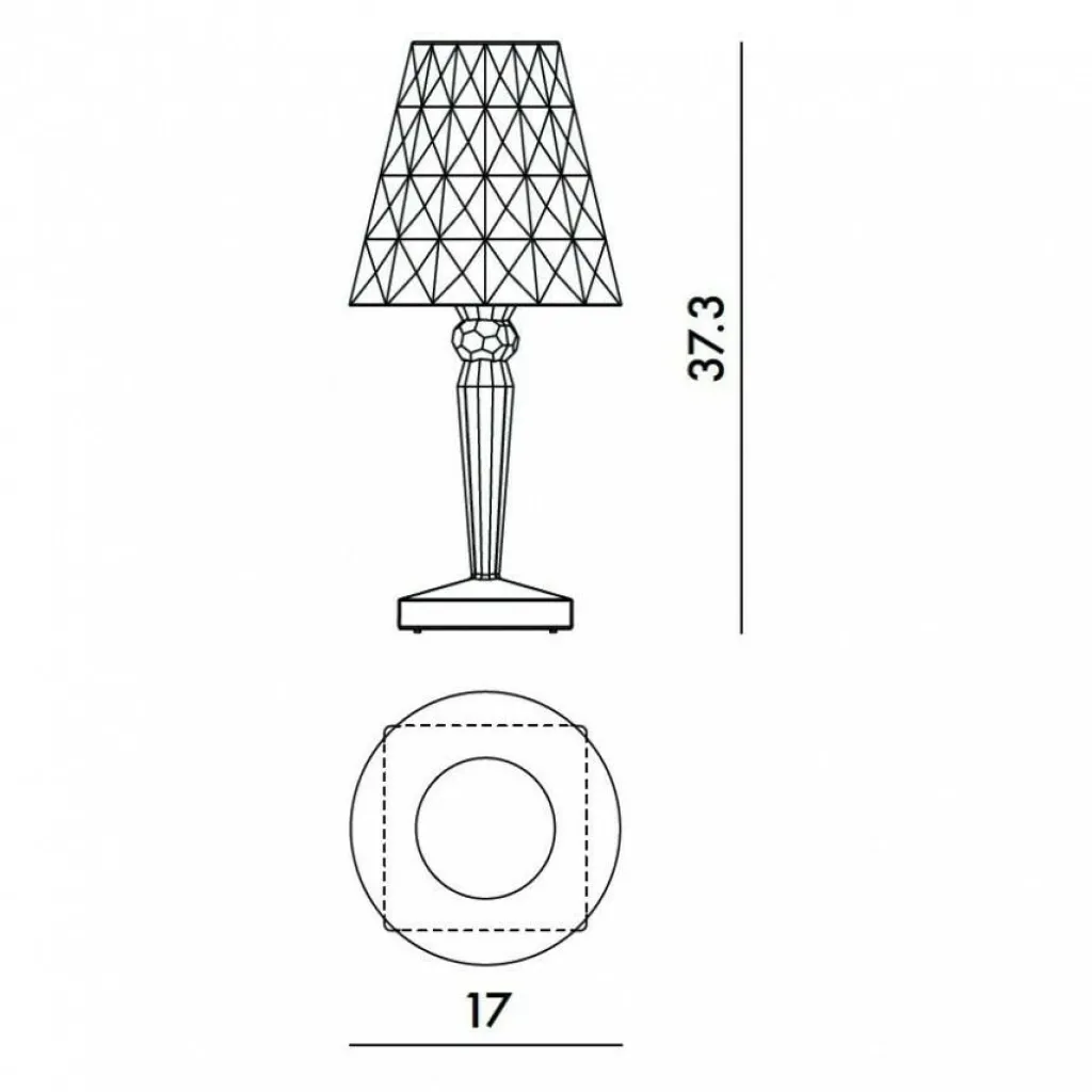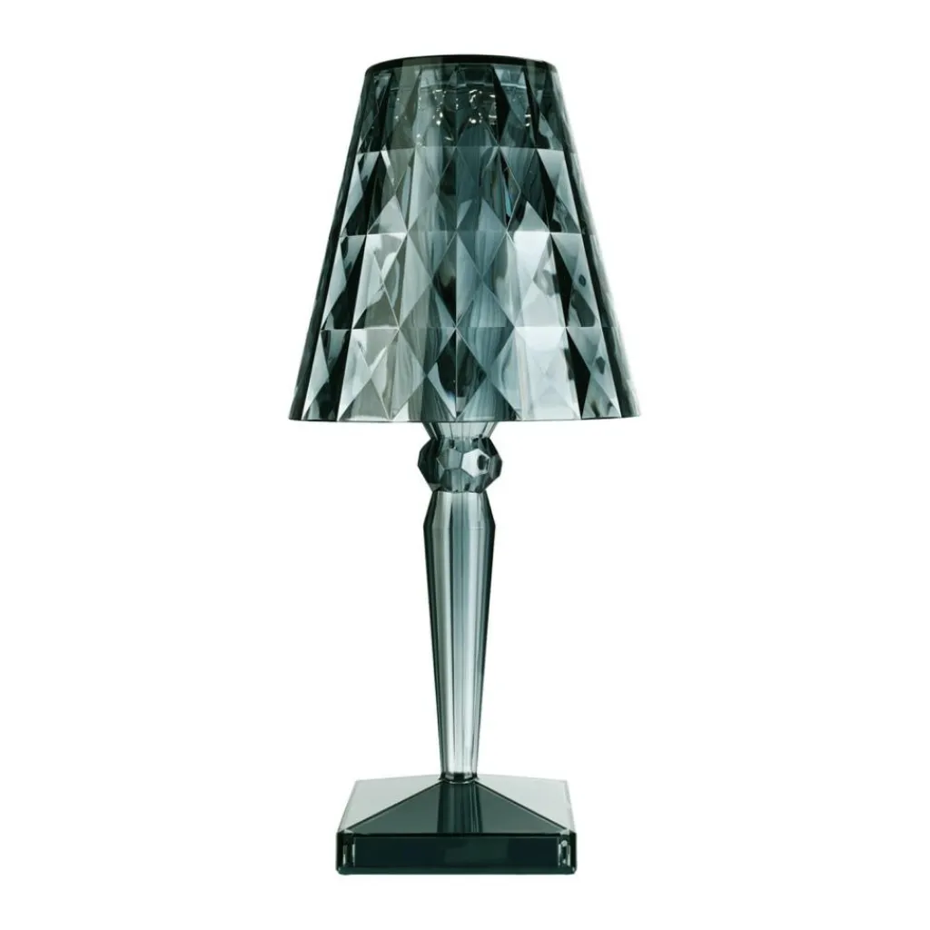 Die Big Battery LED Tischleuchte wurde von Ferruccio Laviani für die Marke Kartell entworfen. Die Leuchte versteht sich als Hommage an historische Adelshäuser, wo edle Kronleuchter für romantisches Ambiente sorgten. Allerdings ist das Modell nicht aus Glas, sondern aus beständigem Polymethylmethacrylat PMMA gefertigt.