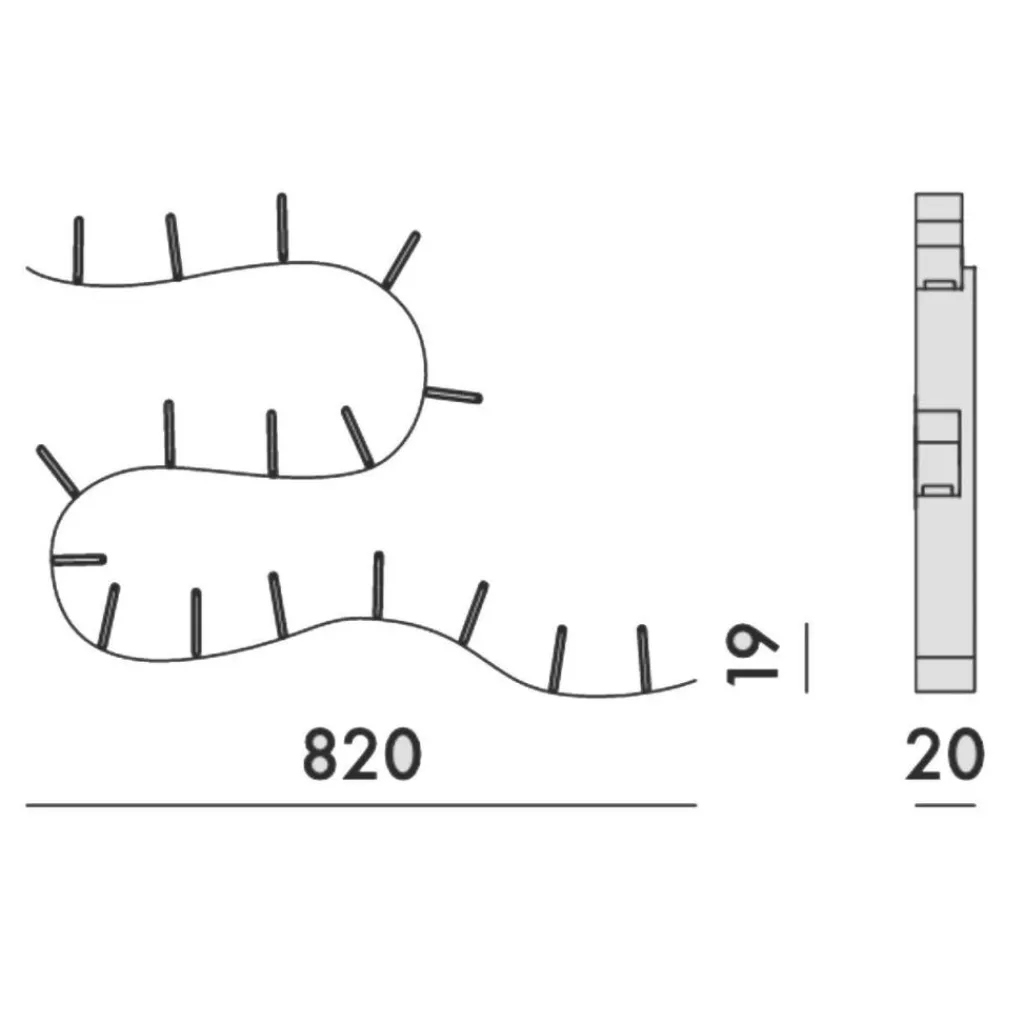 Es gibt das Bookworm Wandregal 820x20cm in halbtransparentem oder durchgefärbtem Material. Das in verschiedenen Farben erhältliche Modell wiegt 16,2 kg. Es ist 820 cm lang und 20 cm tief.