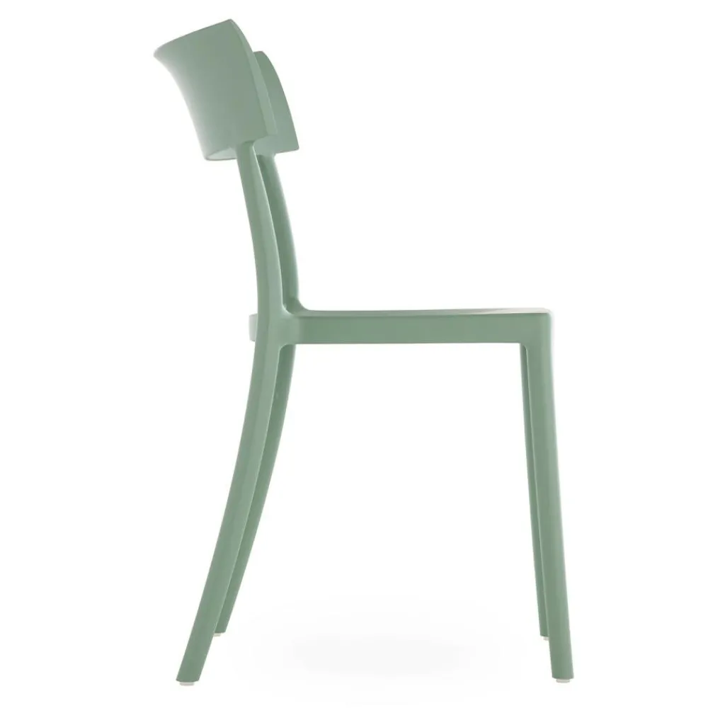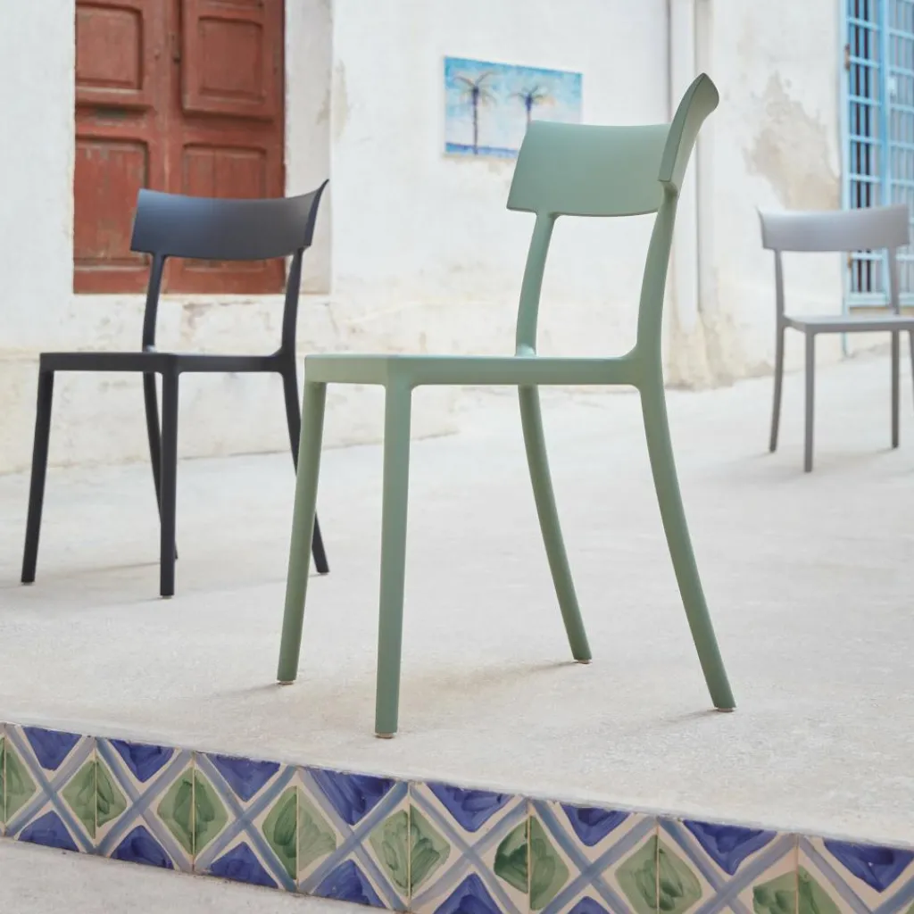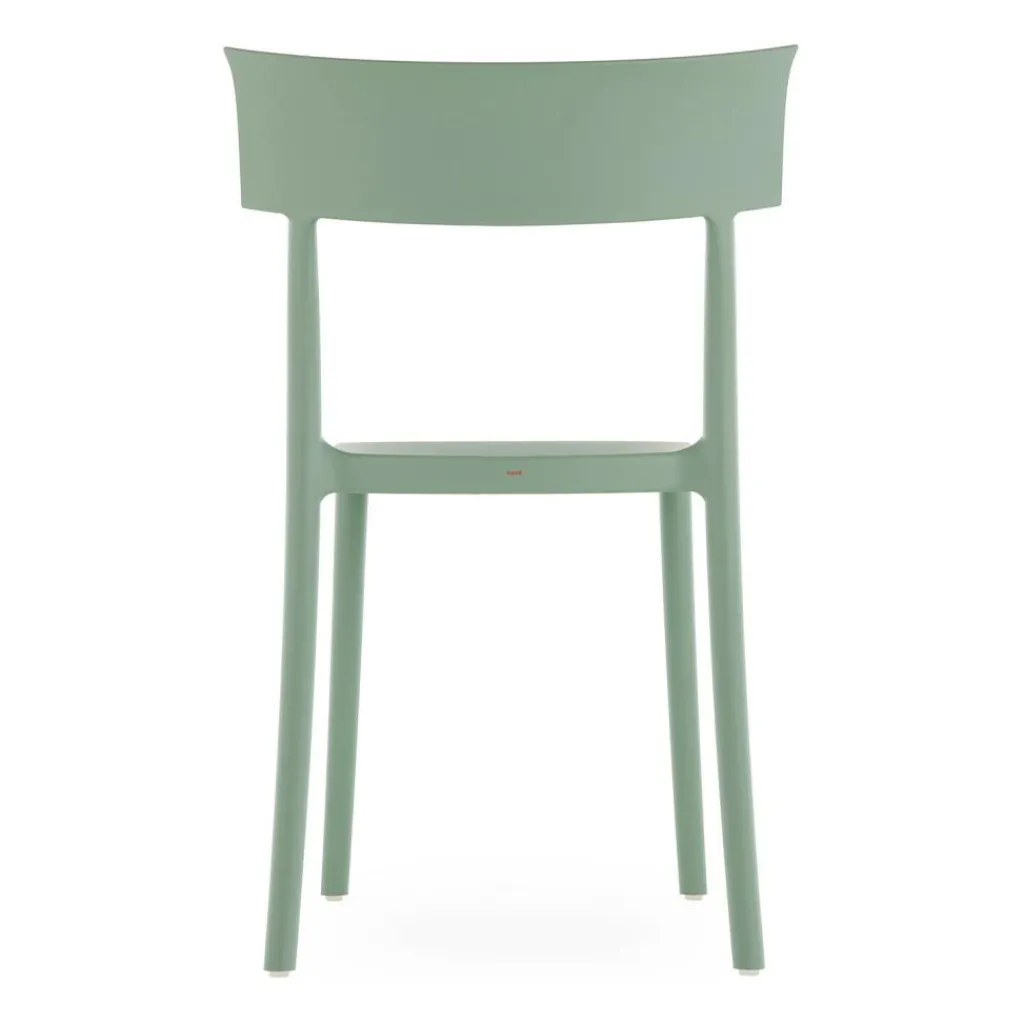 Mit einer klaren Formensprache gestalten die Designer den Catwalk Stuhl matt.Die gebogene, rechteckig geschnittene Rückenlehne bildet einen ansprechenden Kontrast zur annähernd quadratischen Sitzfläche. Der Catwalk Stuhl matt wird aus thermoplastischem Technopolymer hergestellt. Dabei handelt es sich um einen nachhaltig produzierten Werkstoff. Das Material wird aus recyceltem Kunststoff gemacht. Ein mineralischer Füllstoff macht es robust und langlebig. Der Catwalk Stuhl matt kann auch bei schlechtem Wetter im Freien bleiben. Das in verschiedenen Farben erhältliche Modell erweist sich als pflegeleicht. Schmutz und Nässe werden mit einem Tuch abgewischt. Wird der Stuhl nicht gebraucht, kann man bis zu fünf Stück übereinanderstapeln.