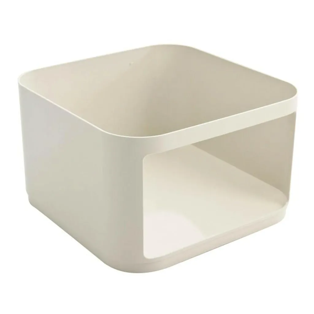 Das Componibili Module eckig wurde von Anna Castelli Ferrieri für die Marke Kartell entworfen. Es gehört zu einer umfangreichen Kollektion, die auch runde Container mit Schiebetüren umfasst. Die 1967 vorgestellte Serie machte Ferrieri in aller Welt berühmt. Mittlerweile zählt die Serie zu den Klassikern funktionaler Aufbewahrungsmöbel: Elemente der Kollektion sind im prestigeträchtigen Centre George Pompidou in Paris und im Museum of Modern Art in New York ausgestellt.