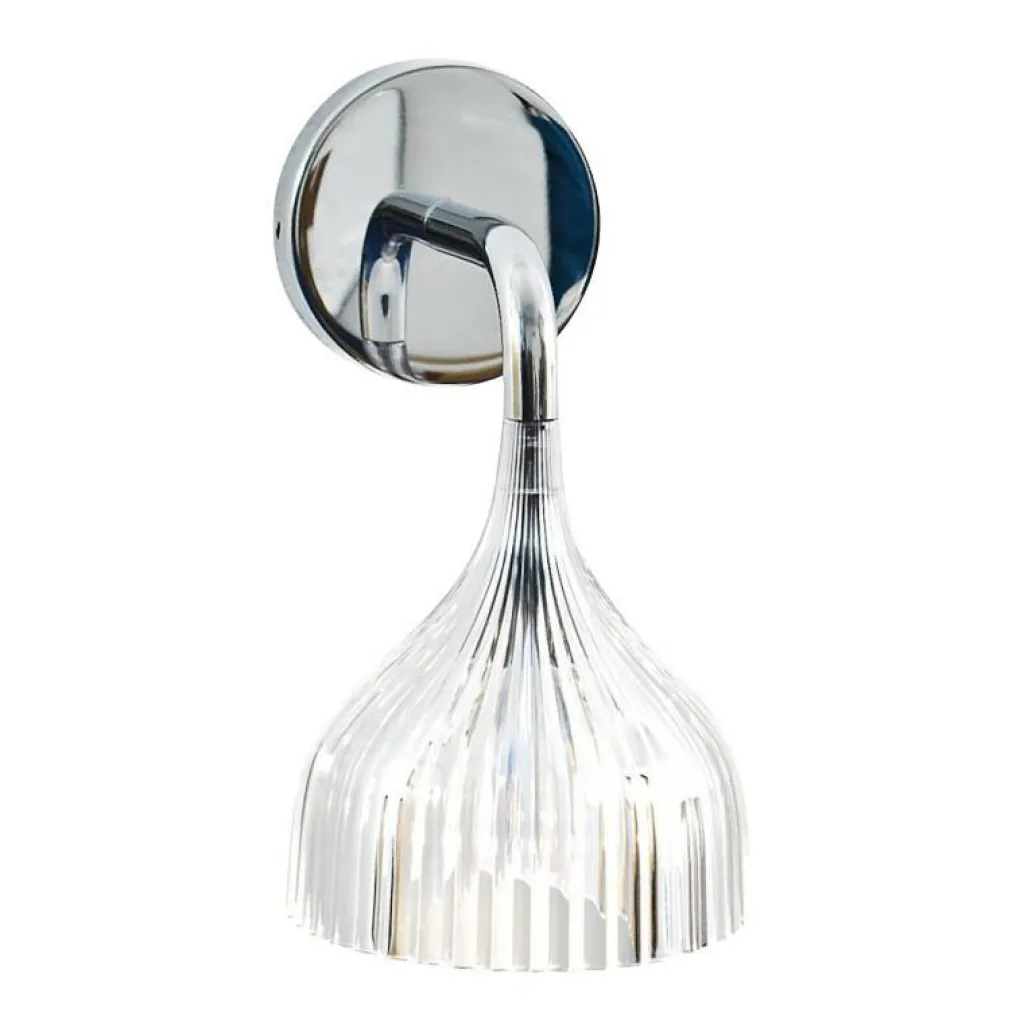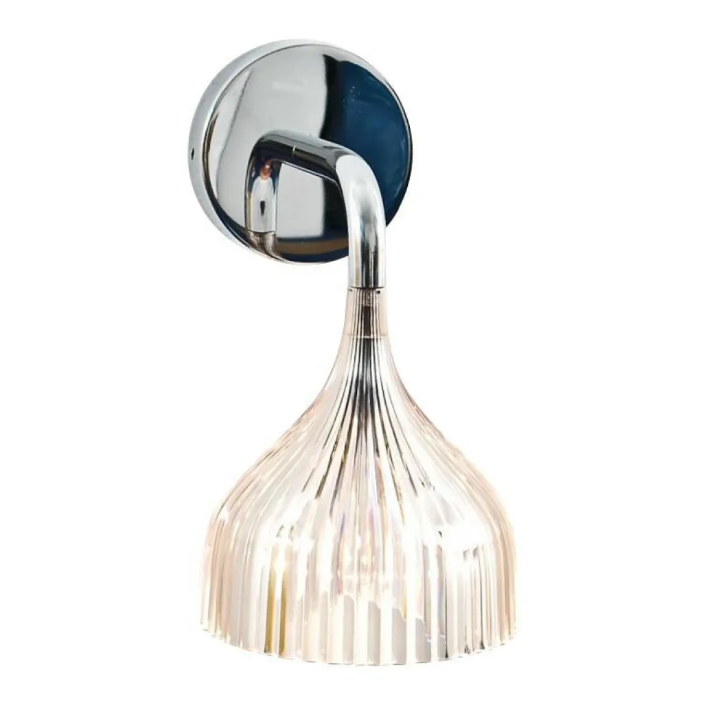 Die É Wandleuchte wurde von Ferruccio Laviani für die Marke Kartell entworfen. Die Leuchte mit außergewöhnlichem Schirm bringt jeden Raum zum Strahlen. Sie gehört zu einer Serie, die auch Pendelleuchten in unterschiedlichen Größen und Farben umfasst.