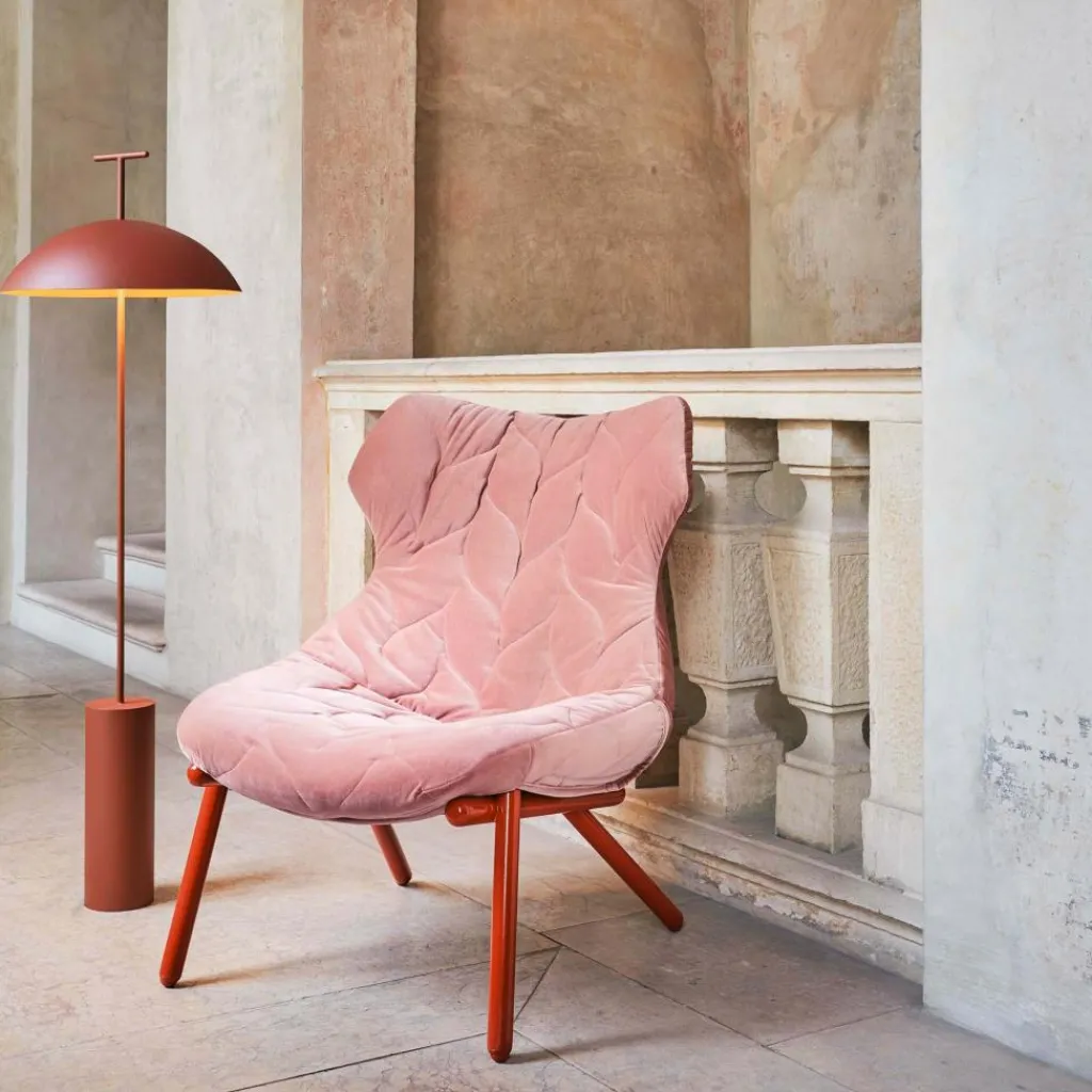 Die Geen-A Stehleuchte wurde von Ferruccio Laviani für die Marke Kartell entworfen. Sie ist Giacomina, der Mutter des italienischen Designers, gewidmet. Ihr Spitzname war Geen-A und ihre Leidenschaft galt den Büchern. Folglich wurde die Geen-A Stehleuchte speziell für das Lesen designt.